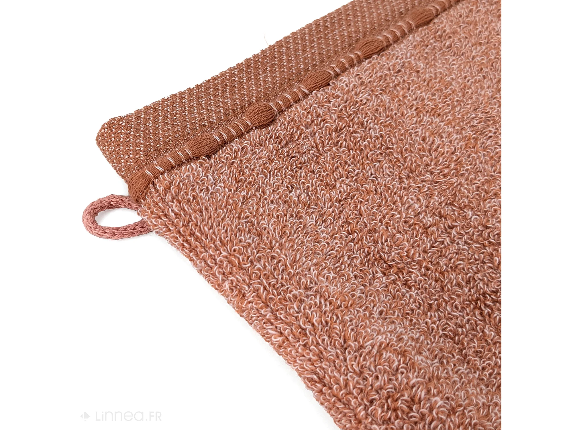 Lot de 2 gants de toilette coton 16x21cm VIVID marron Terre cuite