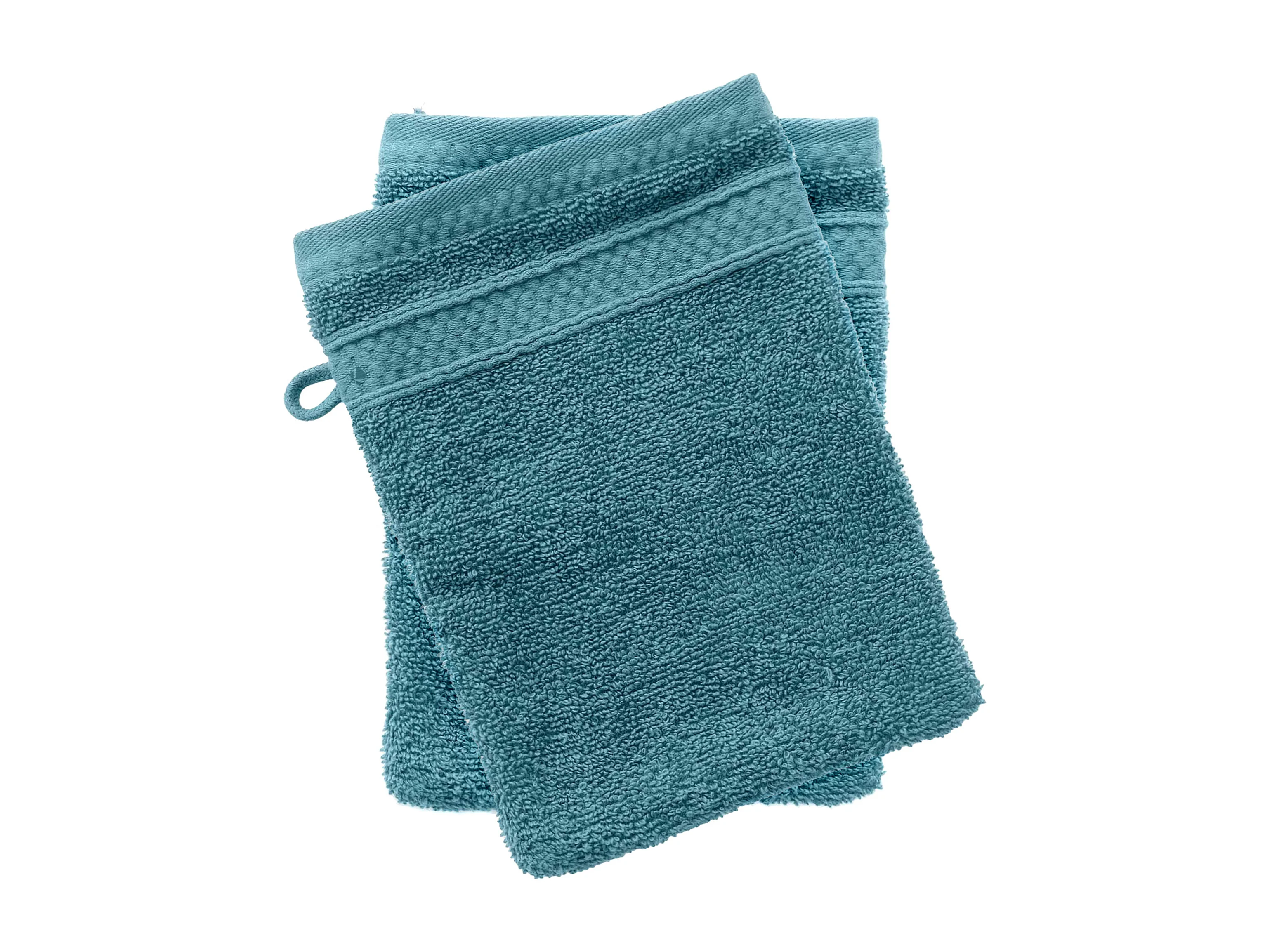 Lot de 2 gants de toilette coton 550 g/m2 NAÏA bleu Paon