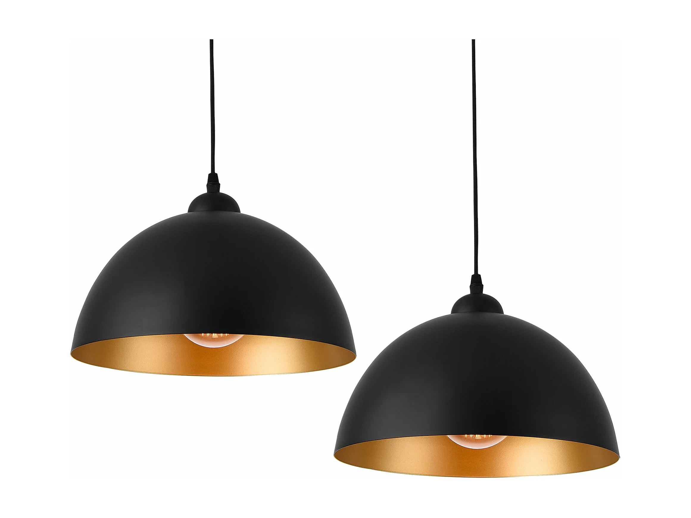 Lot de 2 lampes à suspension éclairage intérieur hauteur réglable métal diamètre 30 cm noir doré 03_0005761