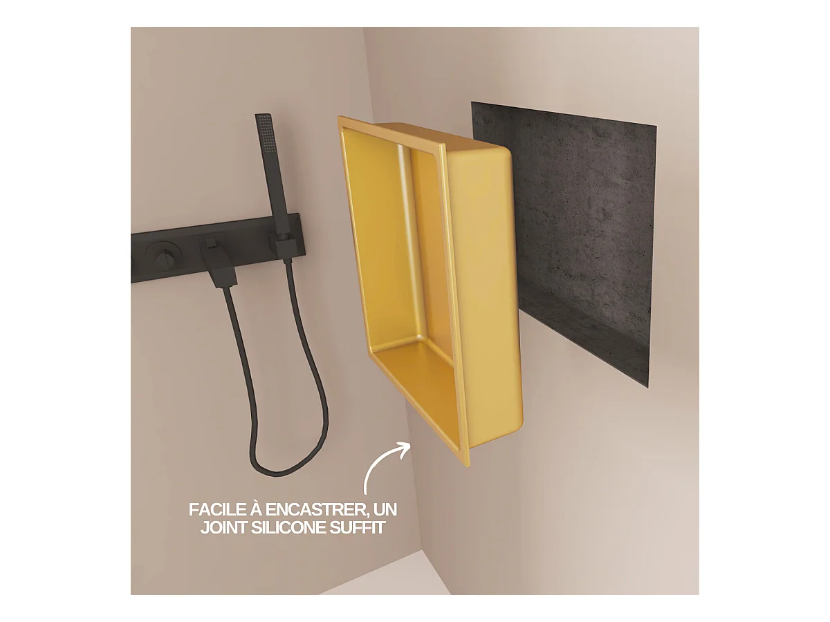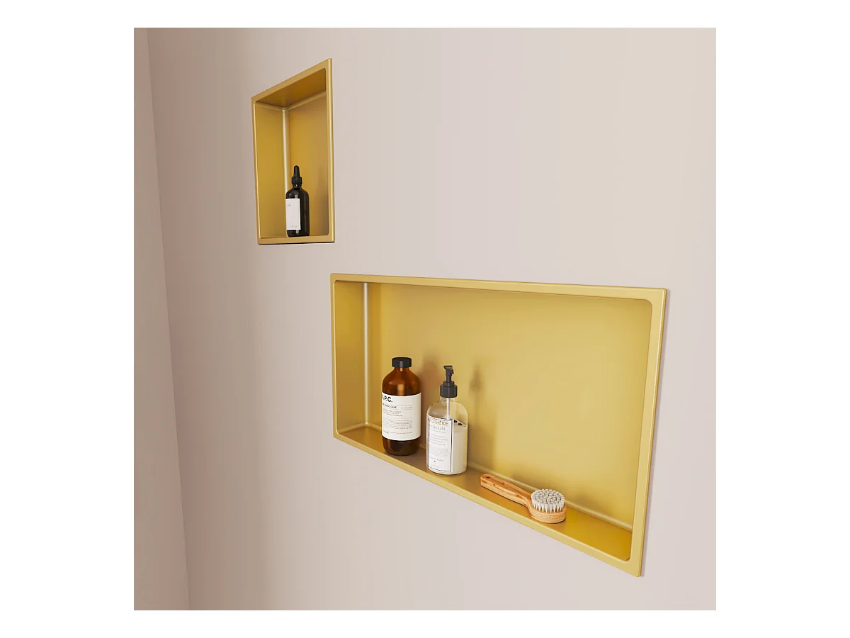 Lot de 2 Niches de Douche, Rangement mural de Salle de Bain et Douche 30x30cm Or Satiné, NOOK by SANIZÉO