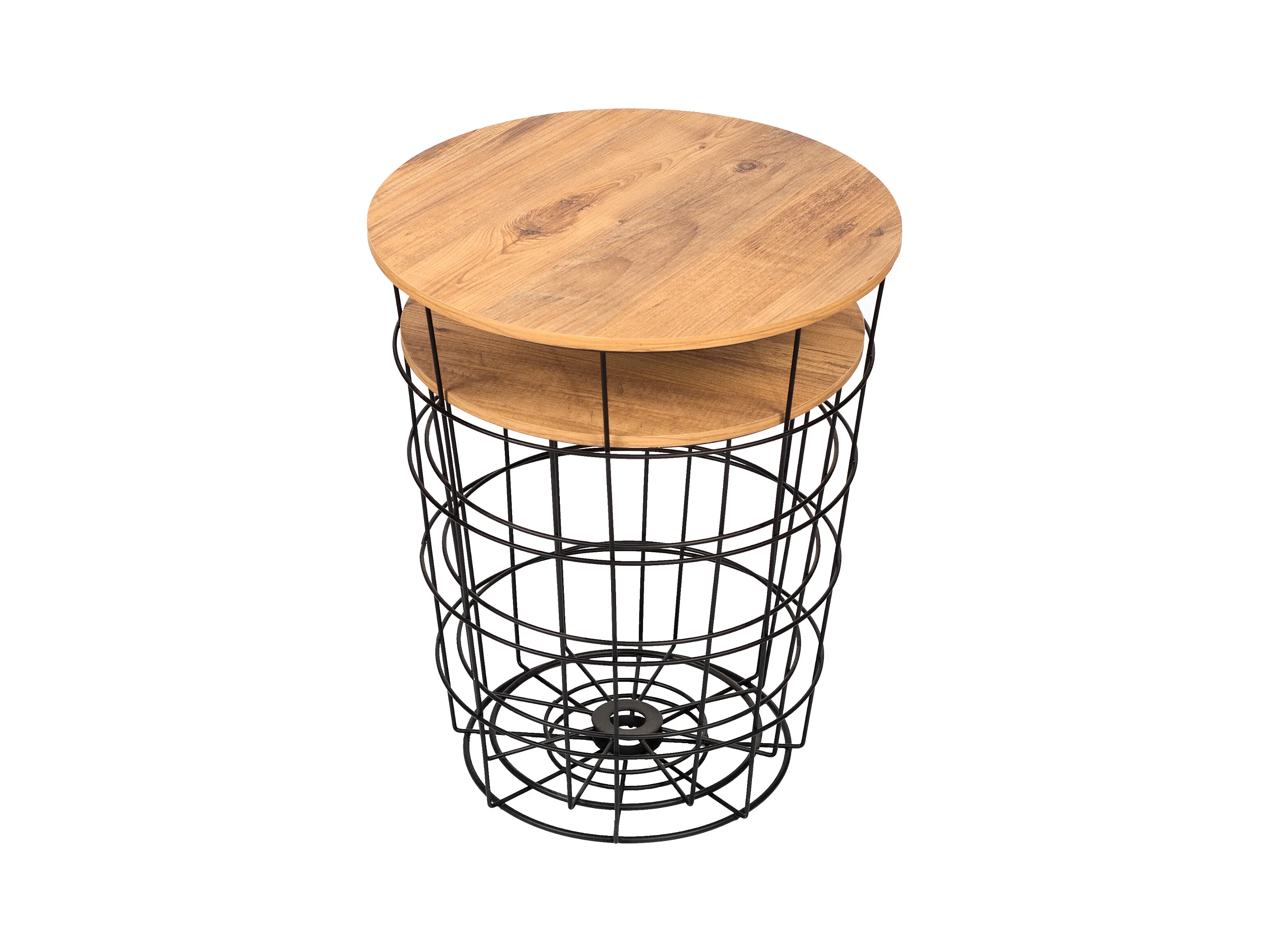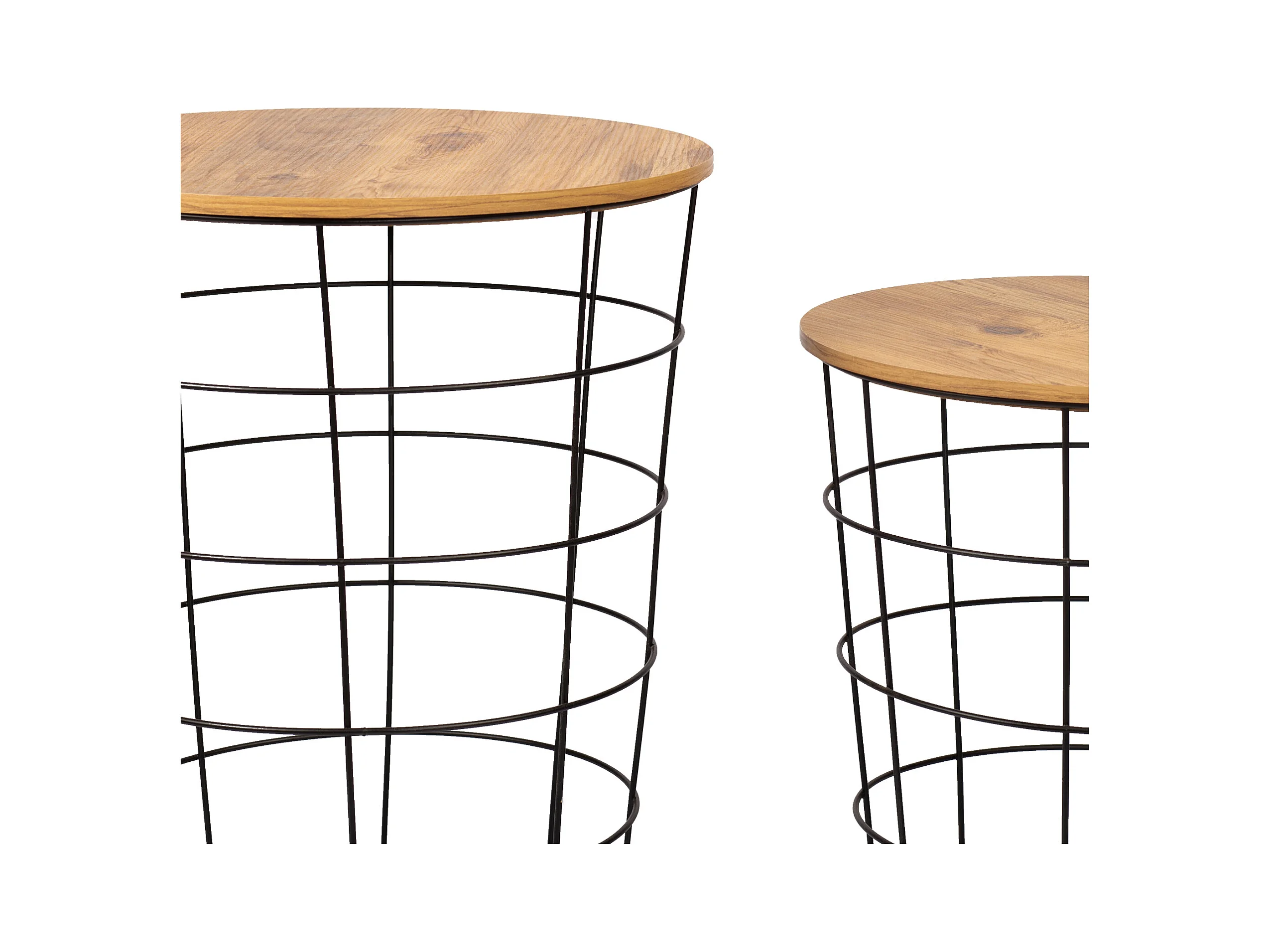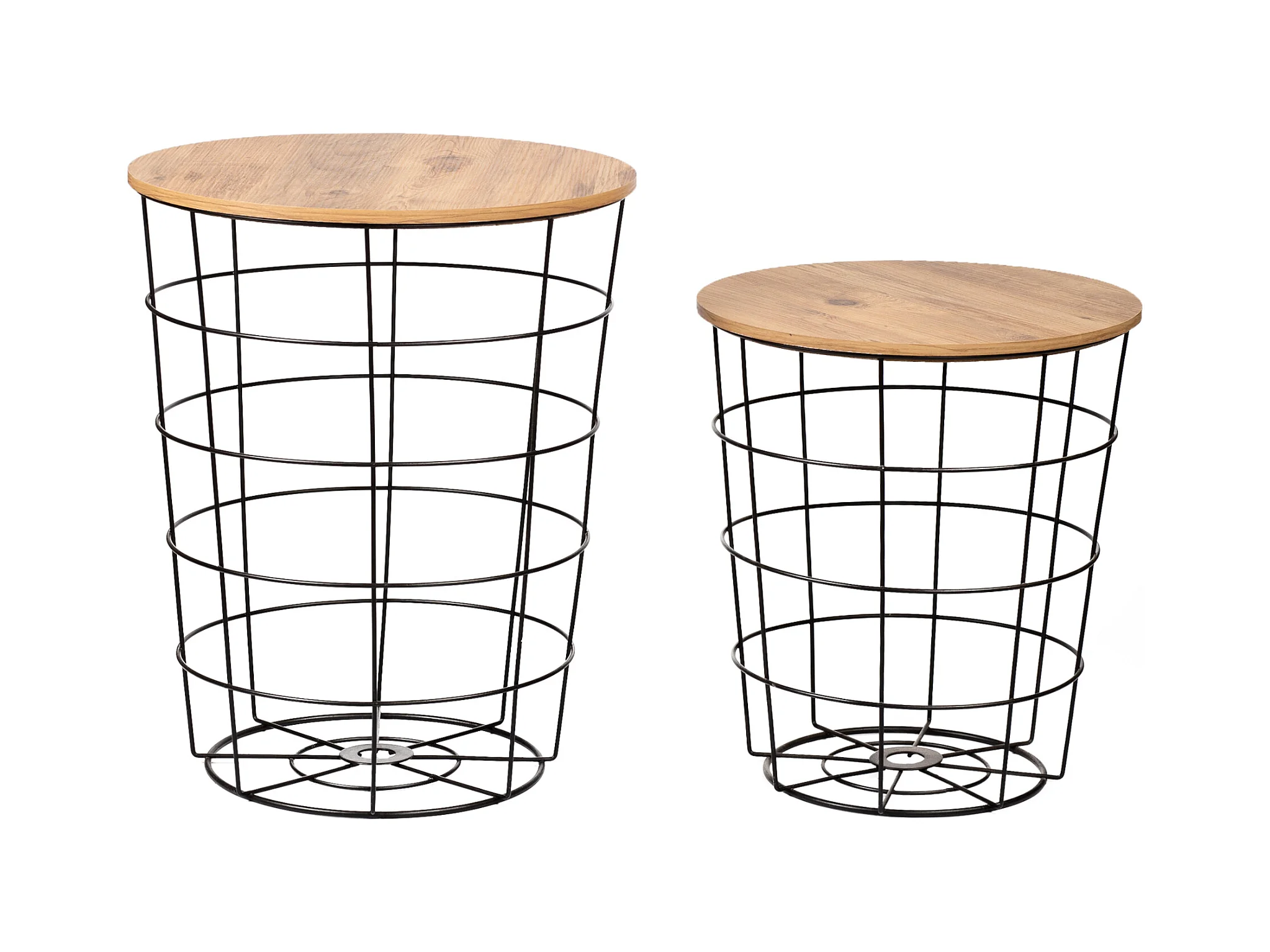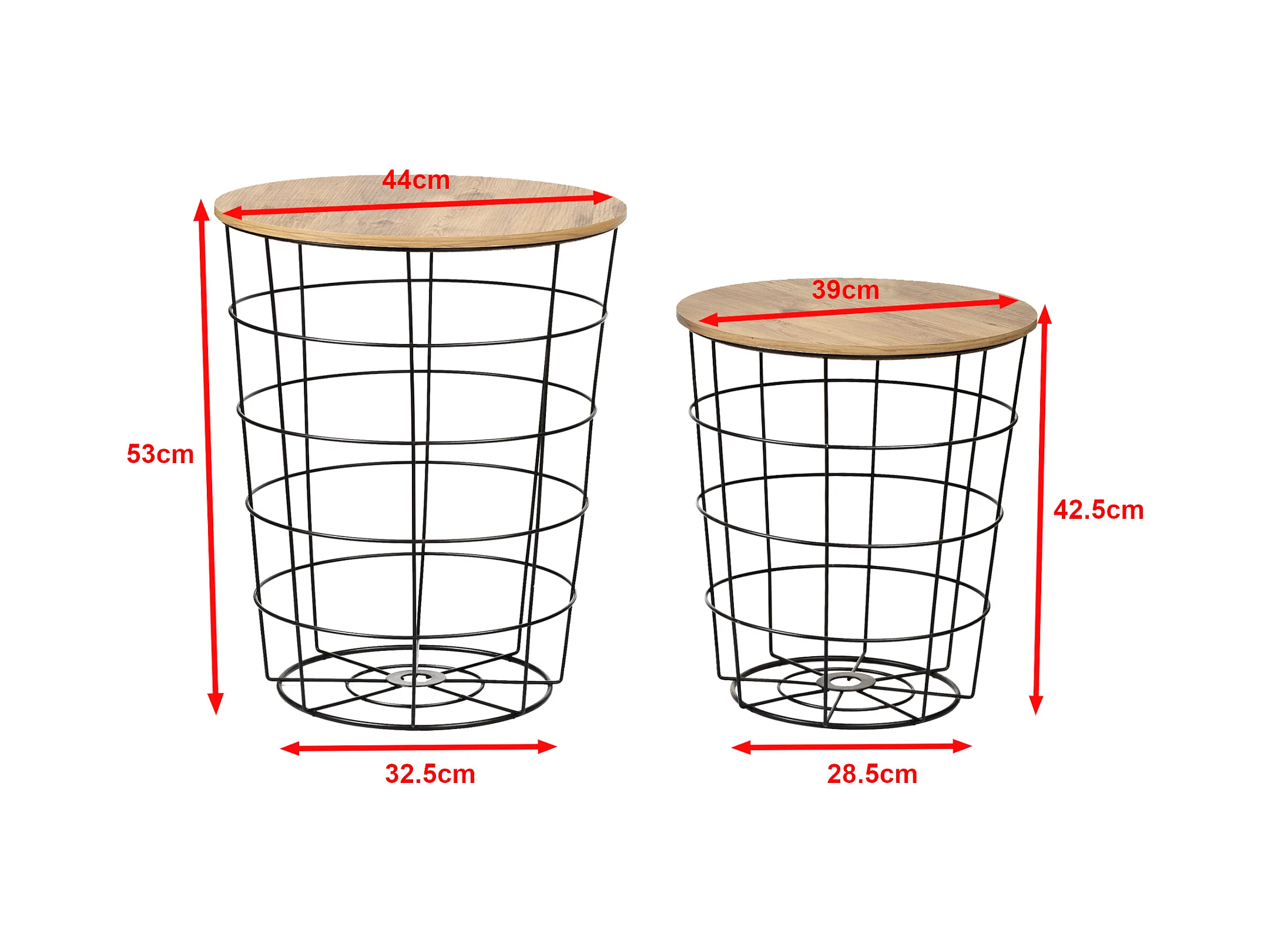 Lot de 2 paniers en métal Hundested avec plateau amovible rond noir / effet bois [en.casa]