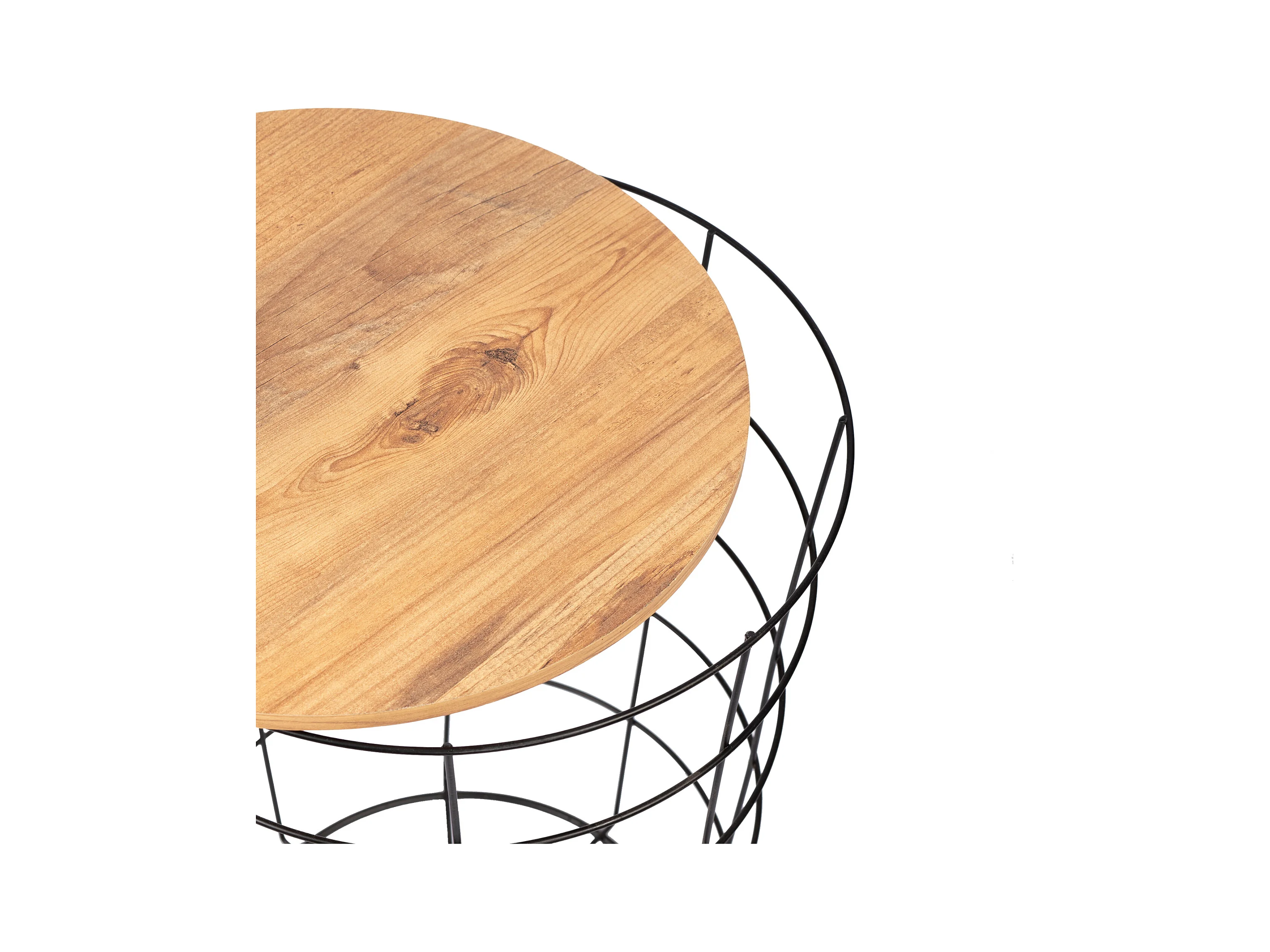 Table à café en métal noir et plateau en Bois déco ethnique H 40 cm