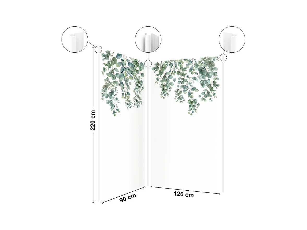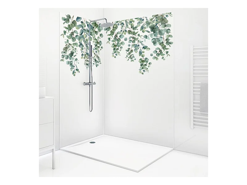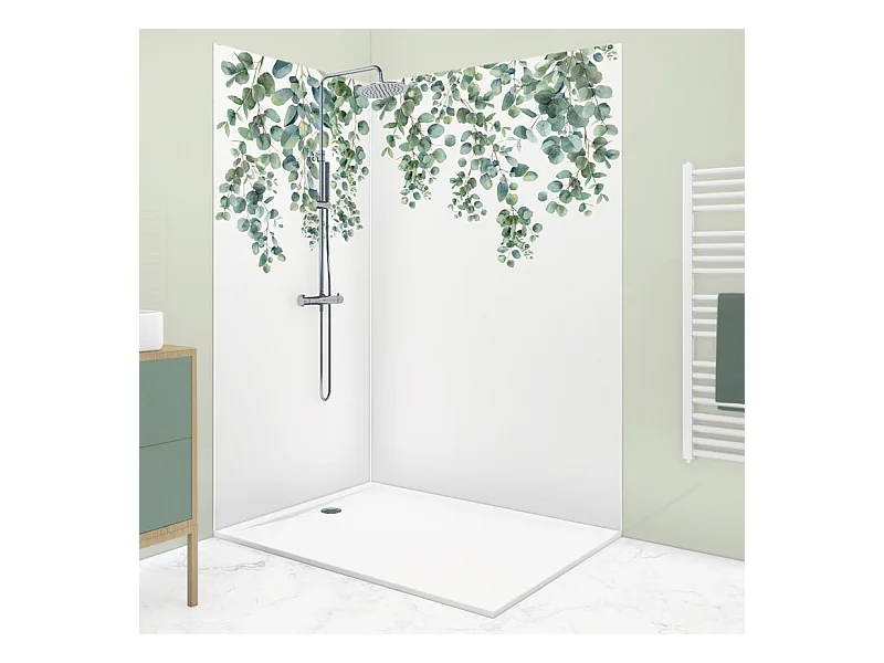 Lot de 2 panneaux de douche en aluminium (90x220 & 120x220 cm) + profilés blanc - Eucalyptus in Rain - Multicolore