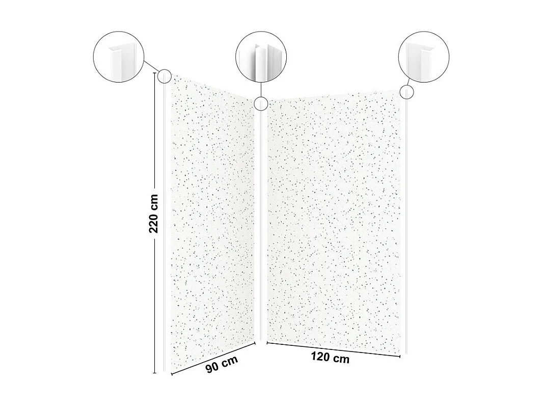 Lot de 2 panneaux de douche en aluminium (90x220 & 120x220 cm) + profilés blanc - Terrazzo Mineral - Multicolore