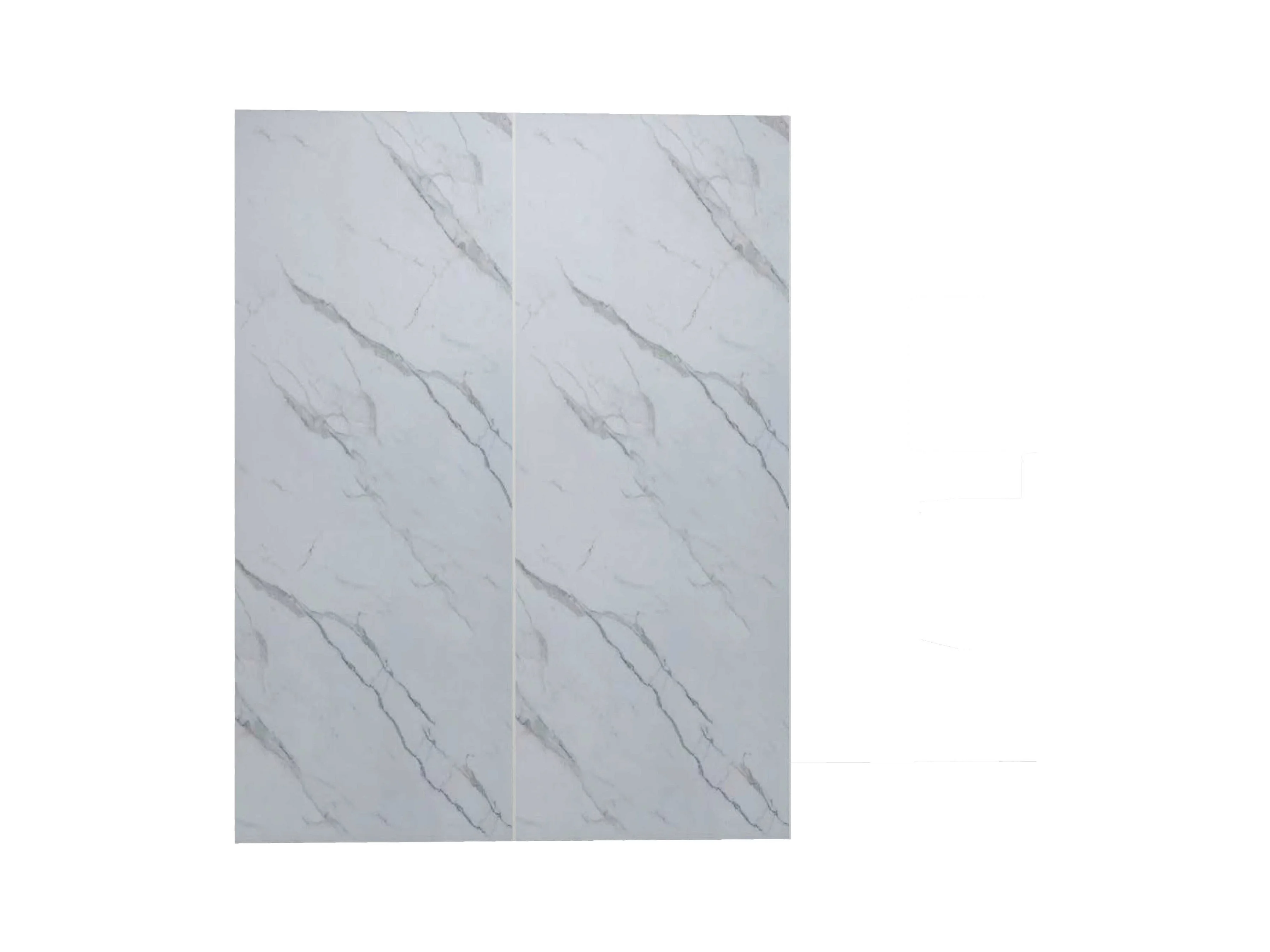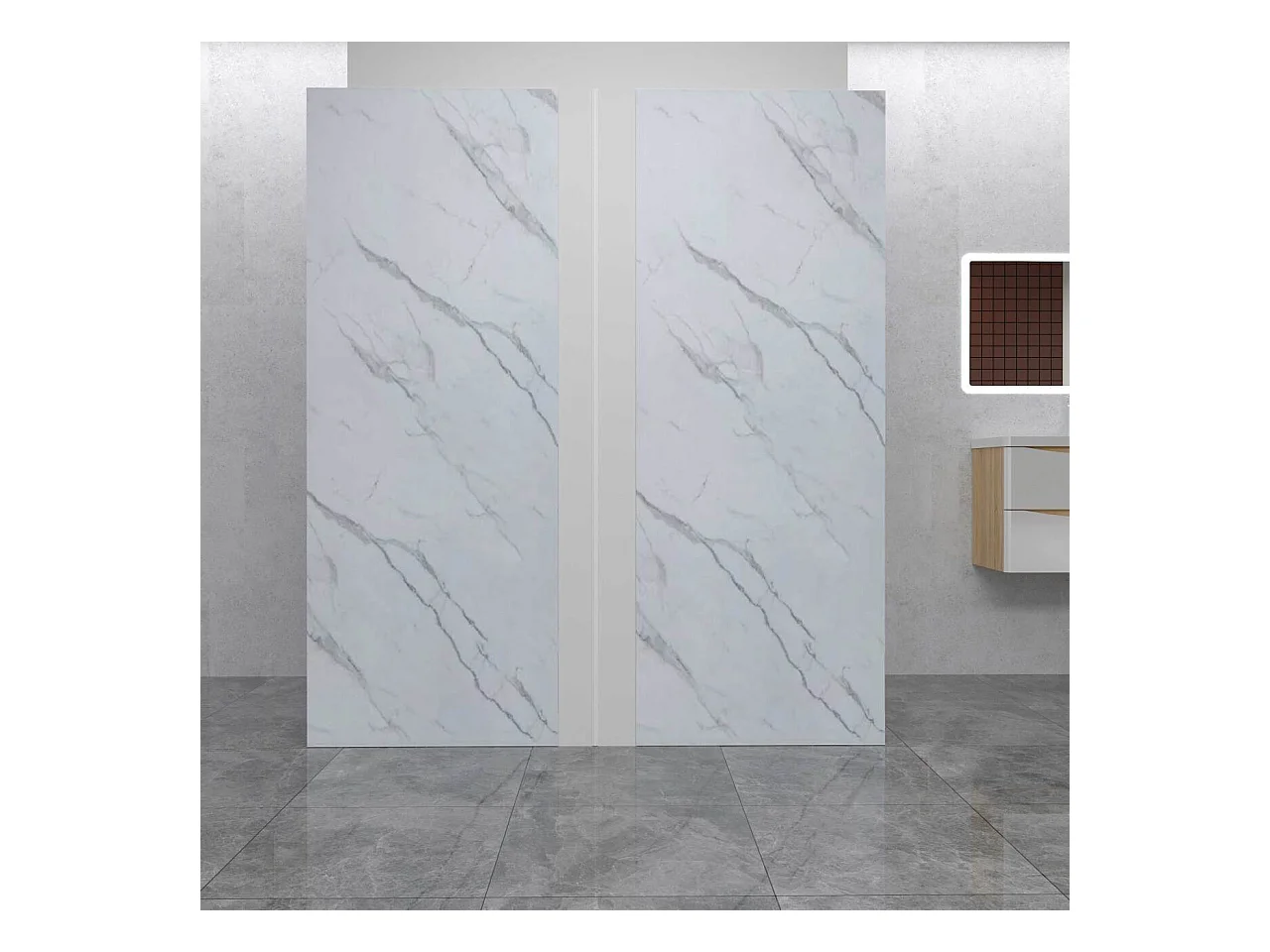 Lot de 2 panneaux muraux de douche effet blanc marbre mural aluminium avec 1 profile - L.90 x L.90 x H.210 cm - Étanche, durable et facile à nettoyer