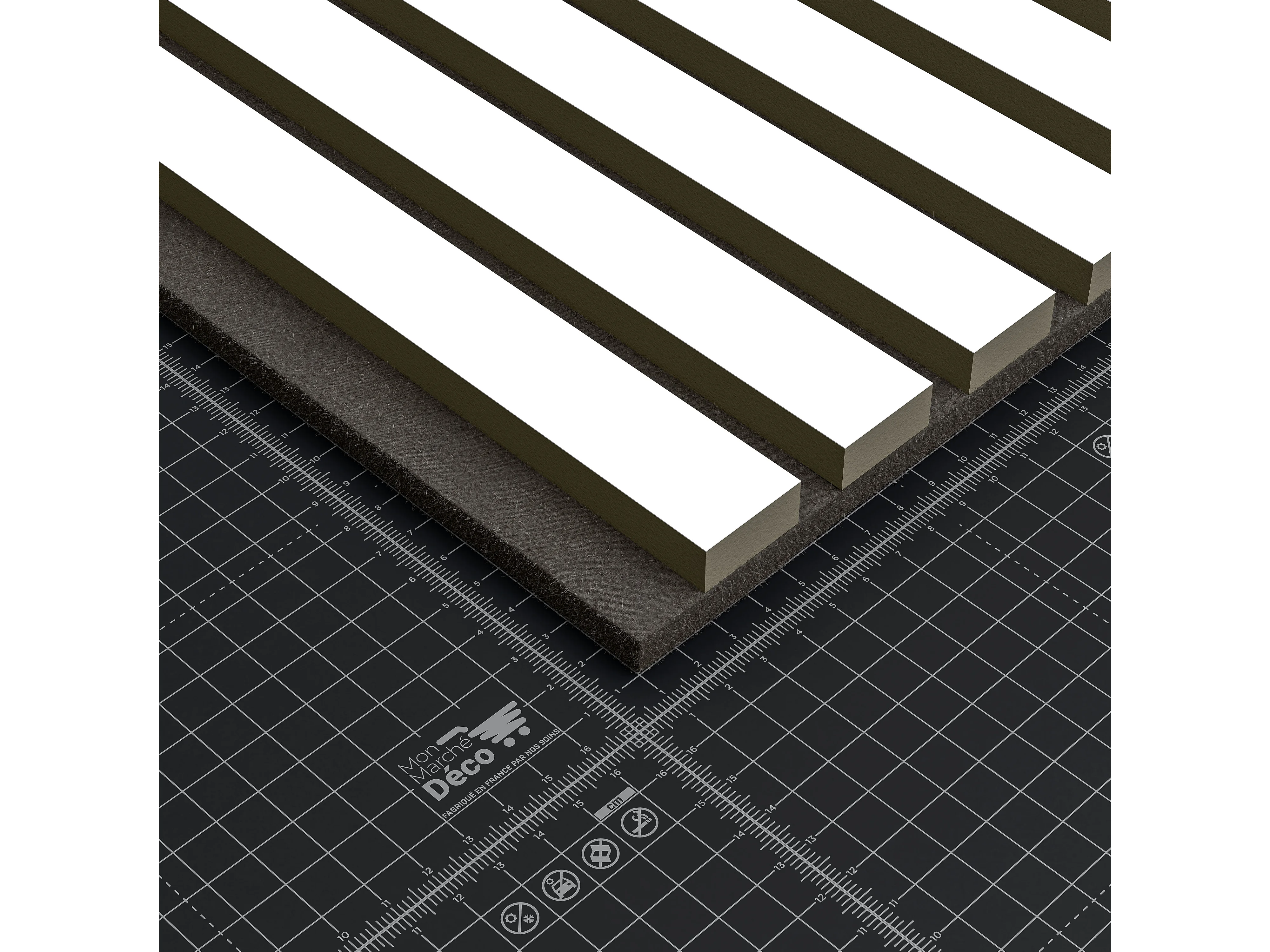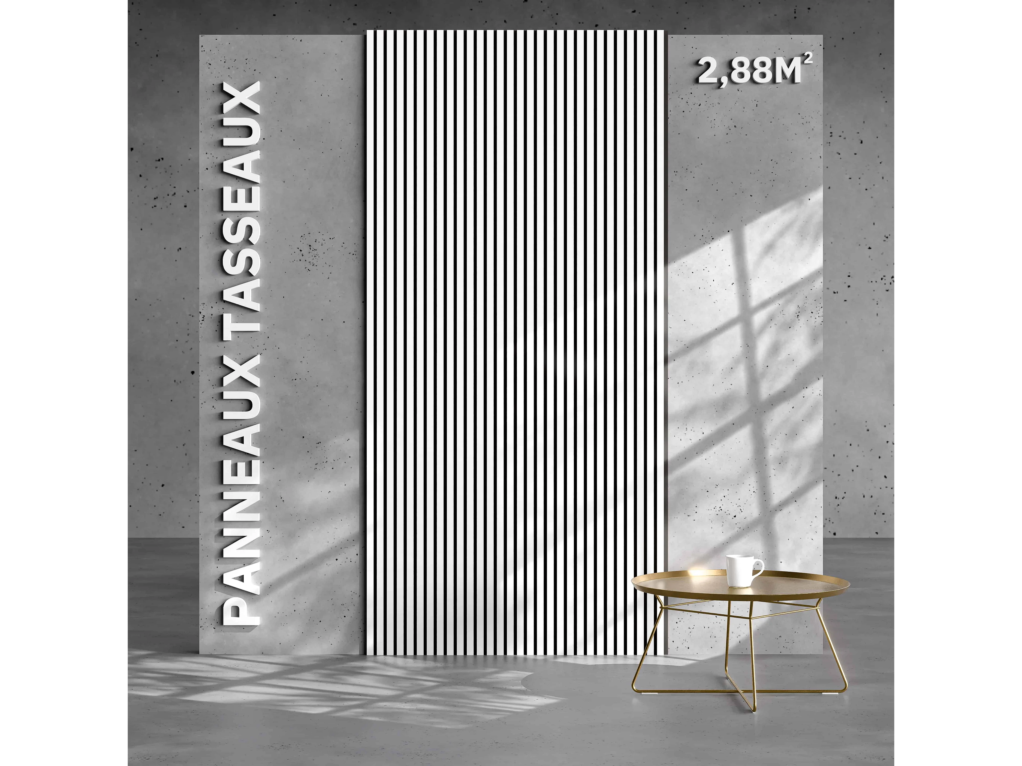 Lot de 2 Panneaux Tasseaux Bois - Blanc Feutre Noir - 2,88 m², 2400 x 600 mm, Mon Marché Déco