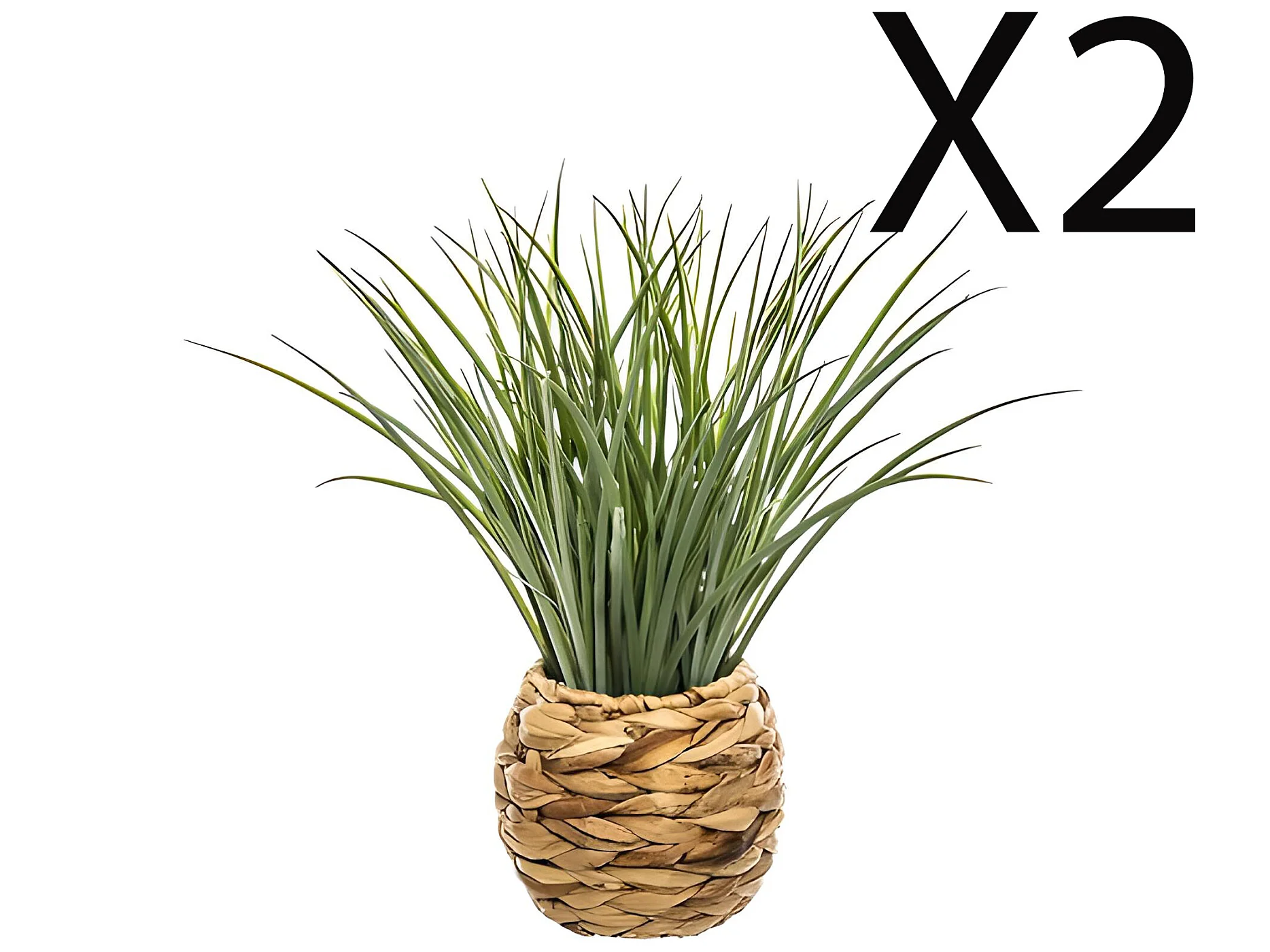 Lot de 2 plantes vertes artificielles avec pot tressé en jacinthe - Diamètre 50 x Hauteur 48,5 cm