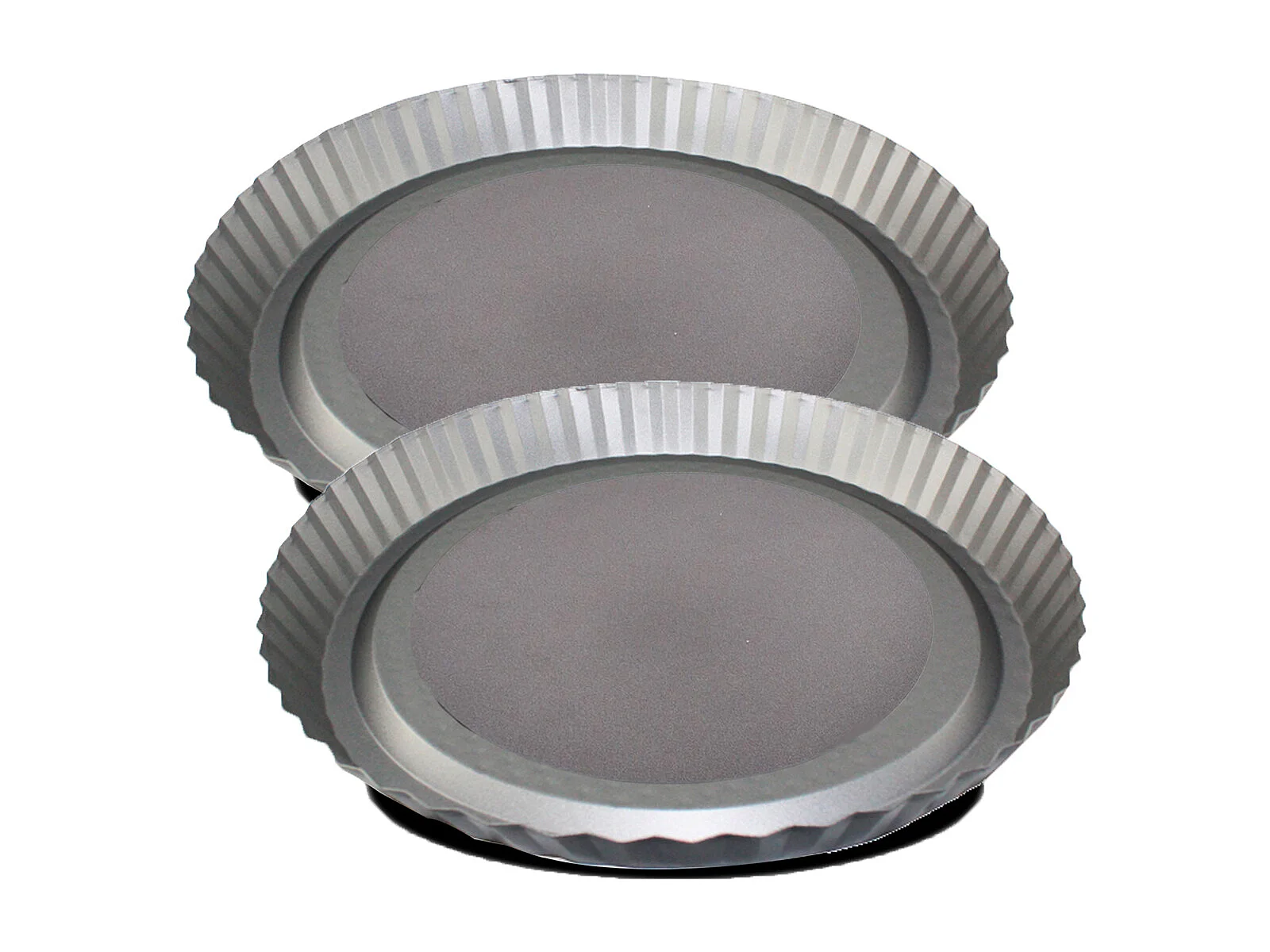 Lot de 2 plat à tarte rond avec fond amovible, moule de cuisson antiadhésif, moule à manqué anti-adhérent coloris gris - Diamètre 28 cm -JUANIO-