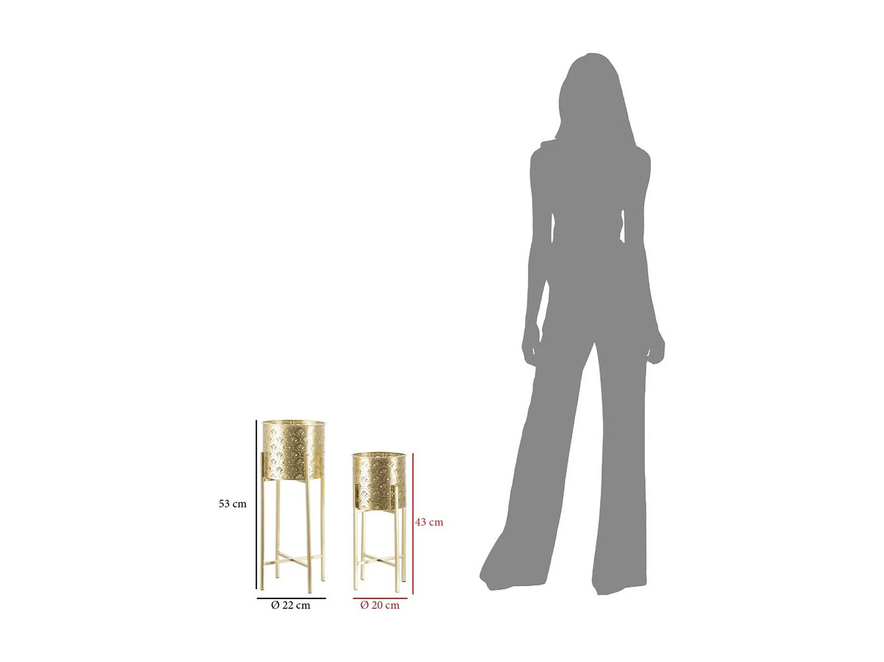 Lot de 2 Cache Pots MF404, Or, 21x20x46 cm, Seven Design