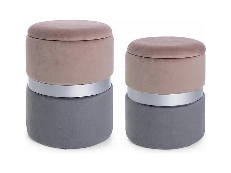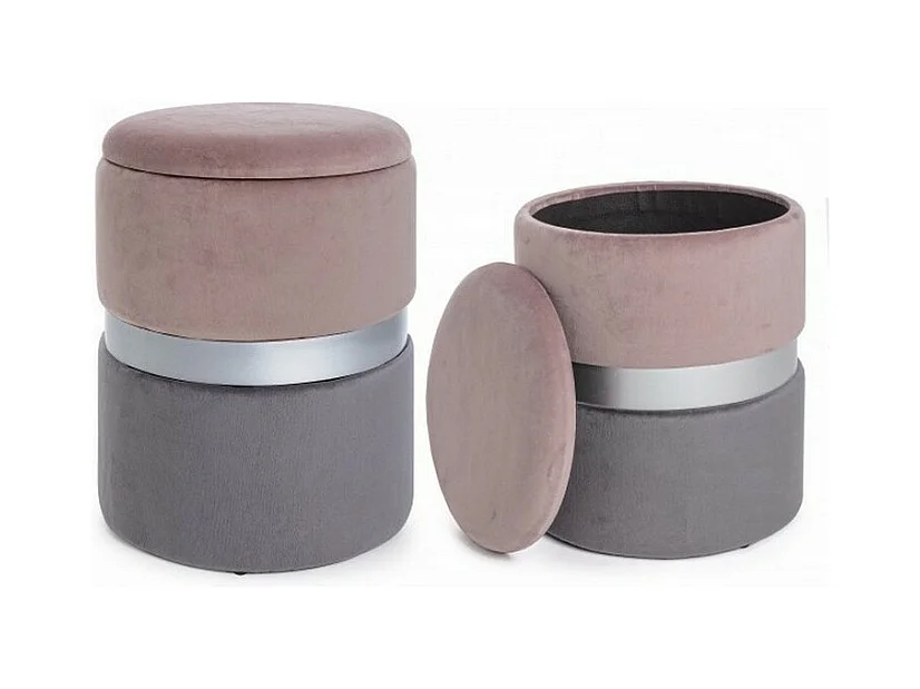 Lot de 2 poufs de rangement effet velours rose-gris - POLINA