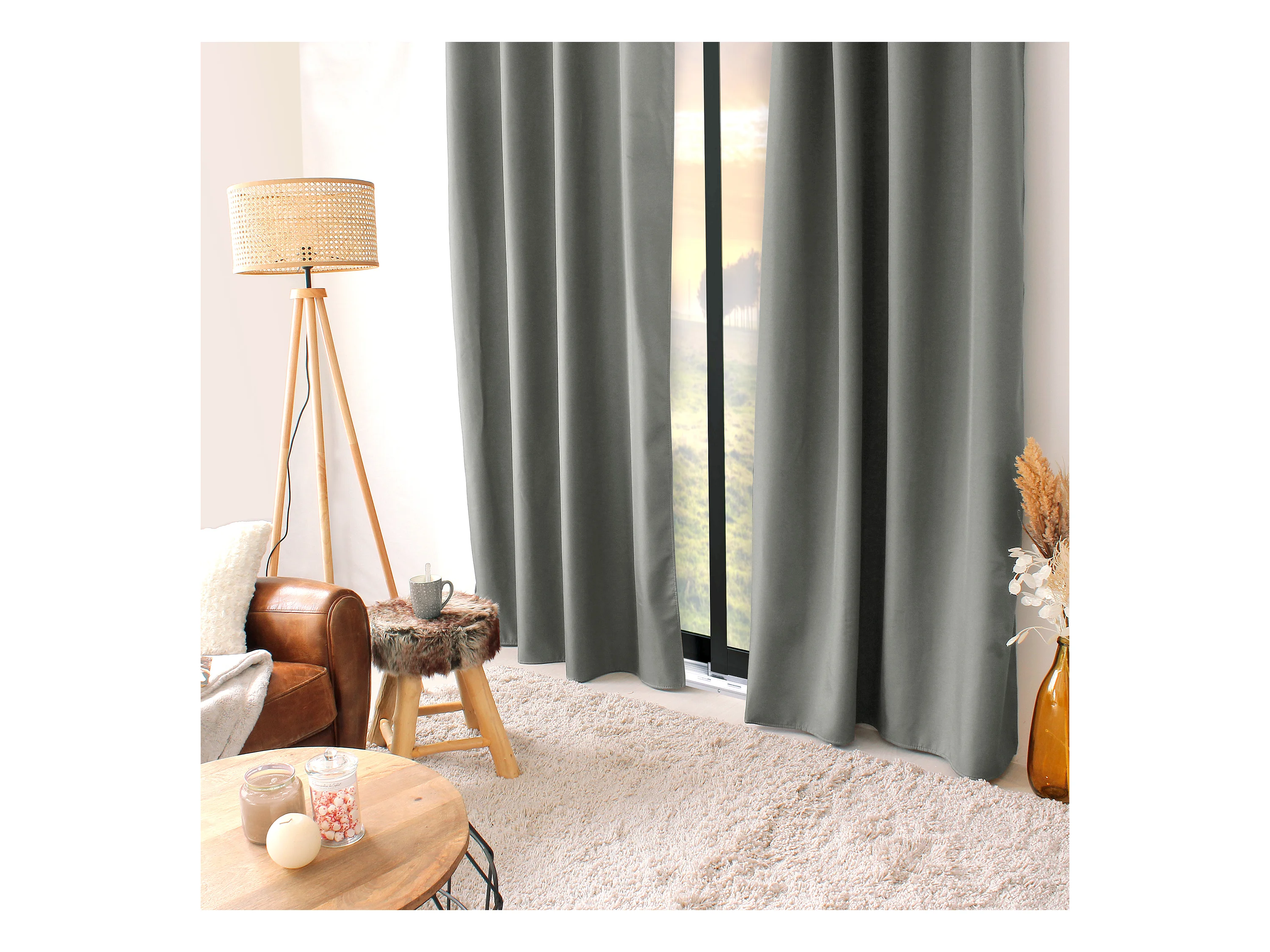 Lot de 2 rideaux obscurcissant thermique fileté avec oeillets, gris, 140x240cm, 100% polyester, collection Floppy
