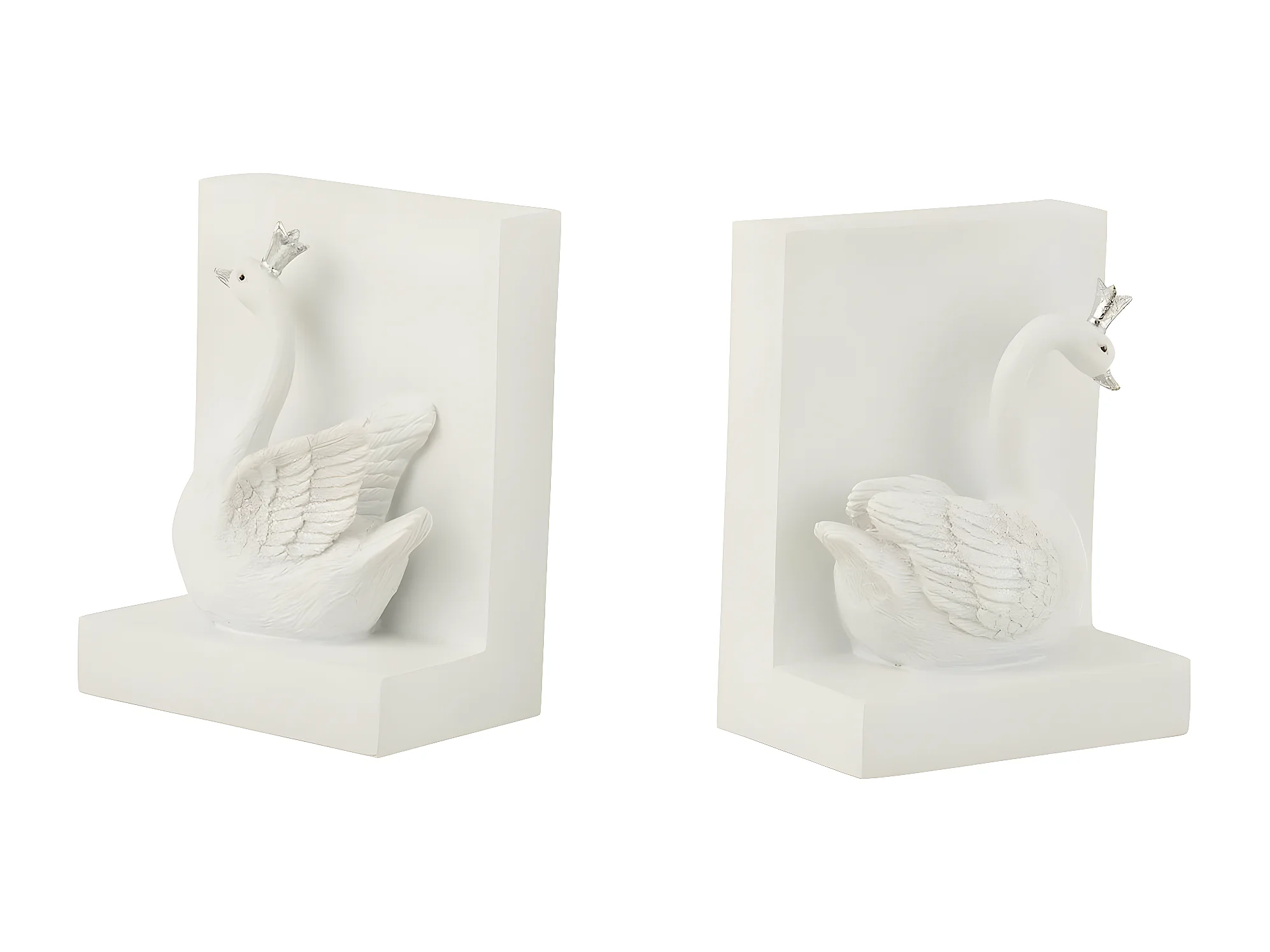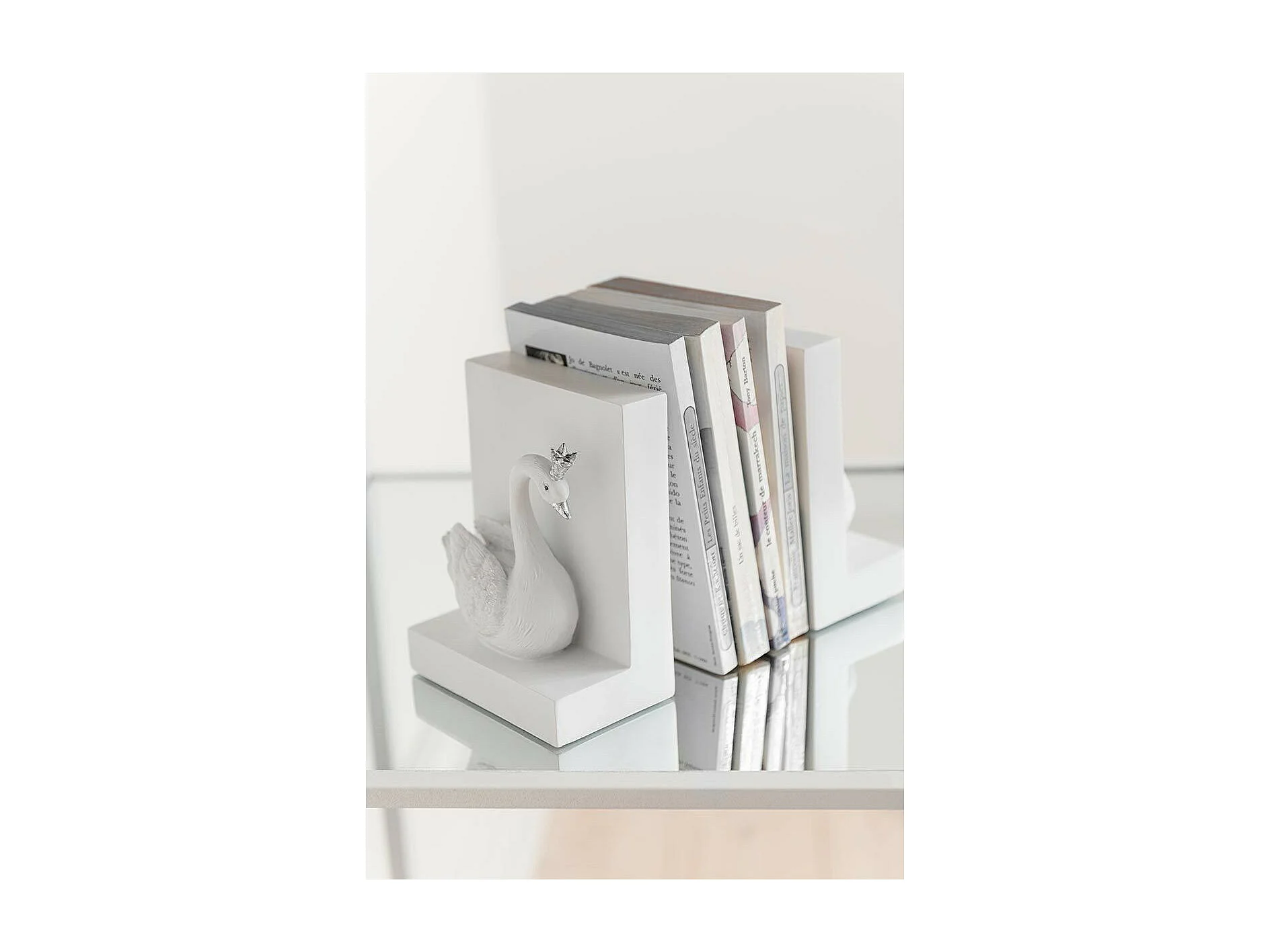 Lot de 2 Serre-Livres "Cygne" 14cm Blanc & Argent