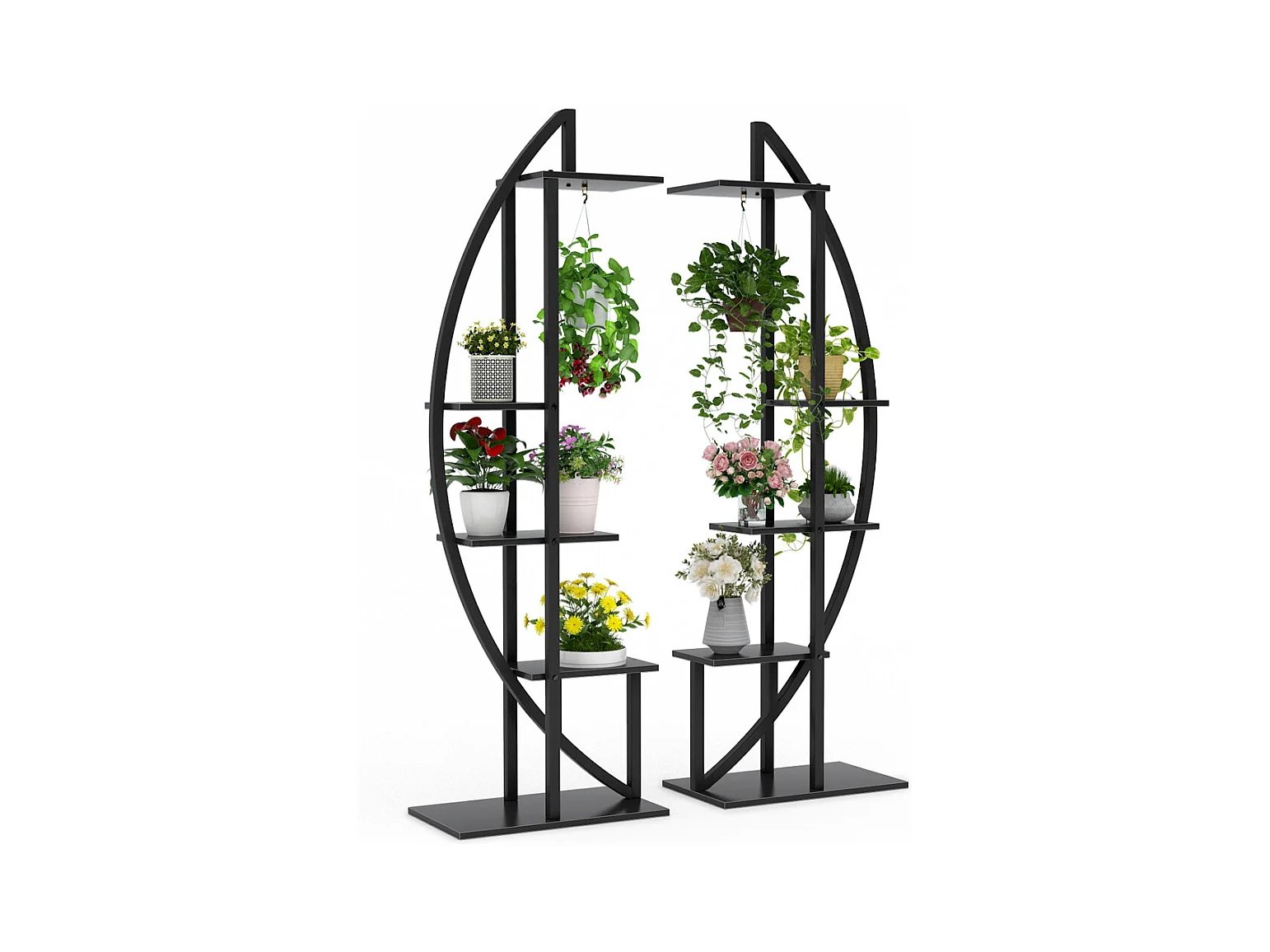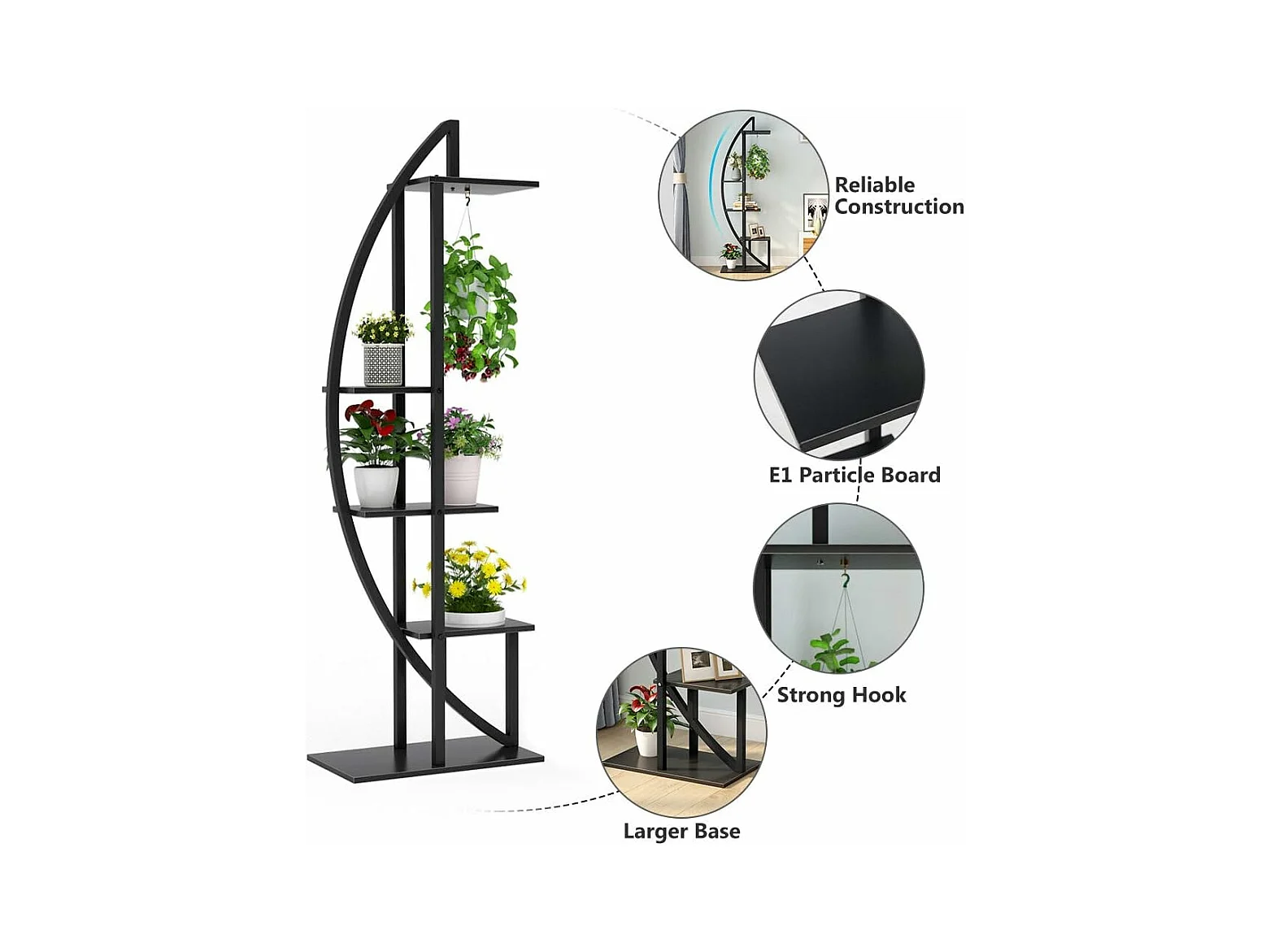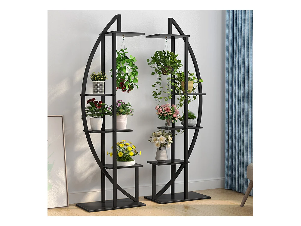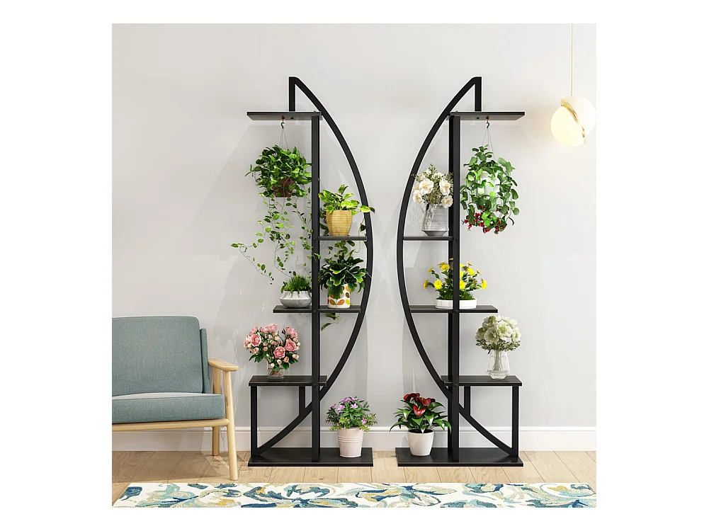 Lot de 2 supports de plantes d'intérieur à 5 étages en métal incurvé avec 2 crochets de suspension, multi-usages pour intérieur, salon