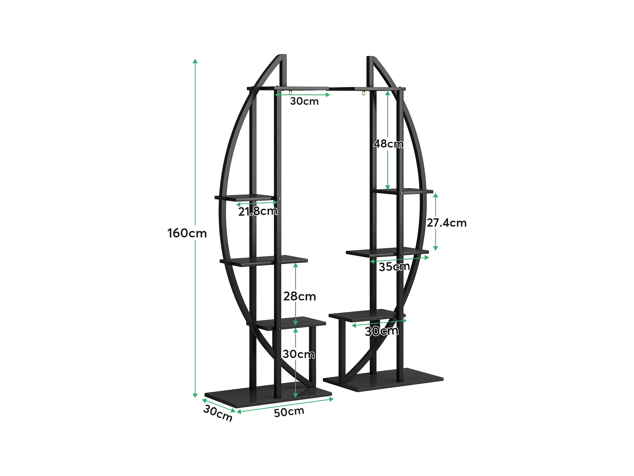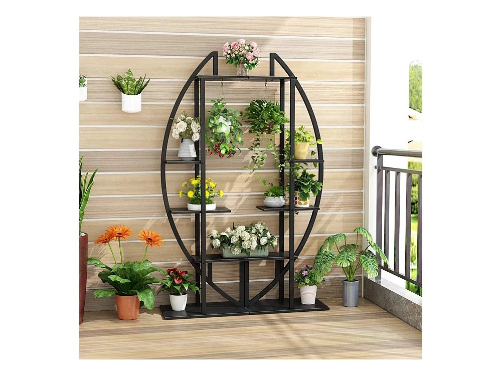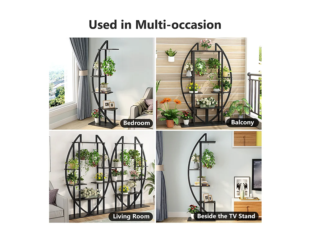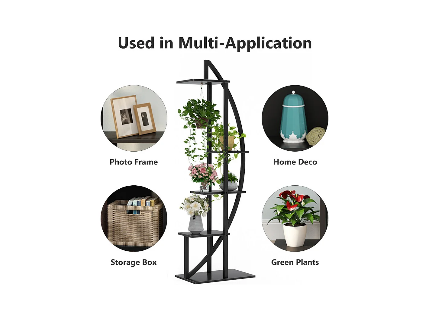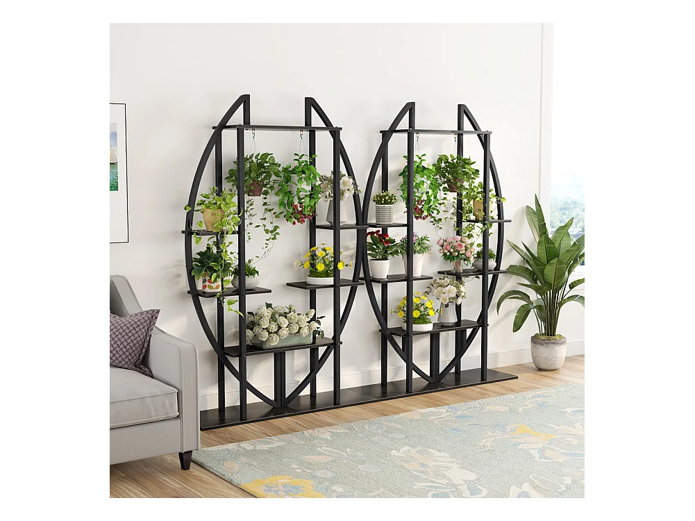 Lot de 2 supports de plantes d'intérieur à 5 étages en métal incurvé avec 2 crochets de suspension, multi-usages pour intérieur, salon