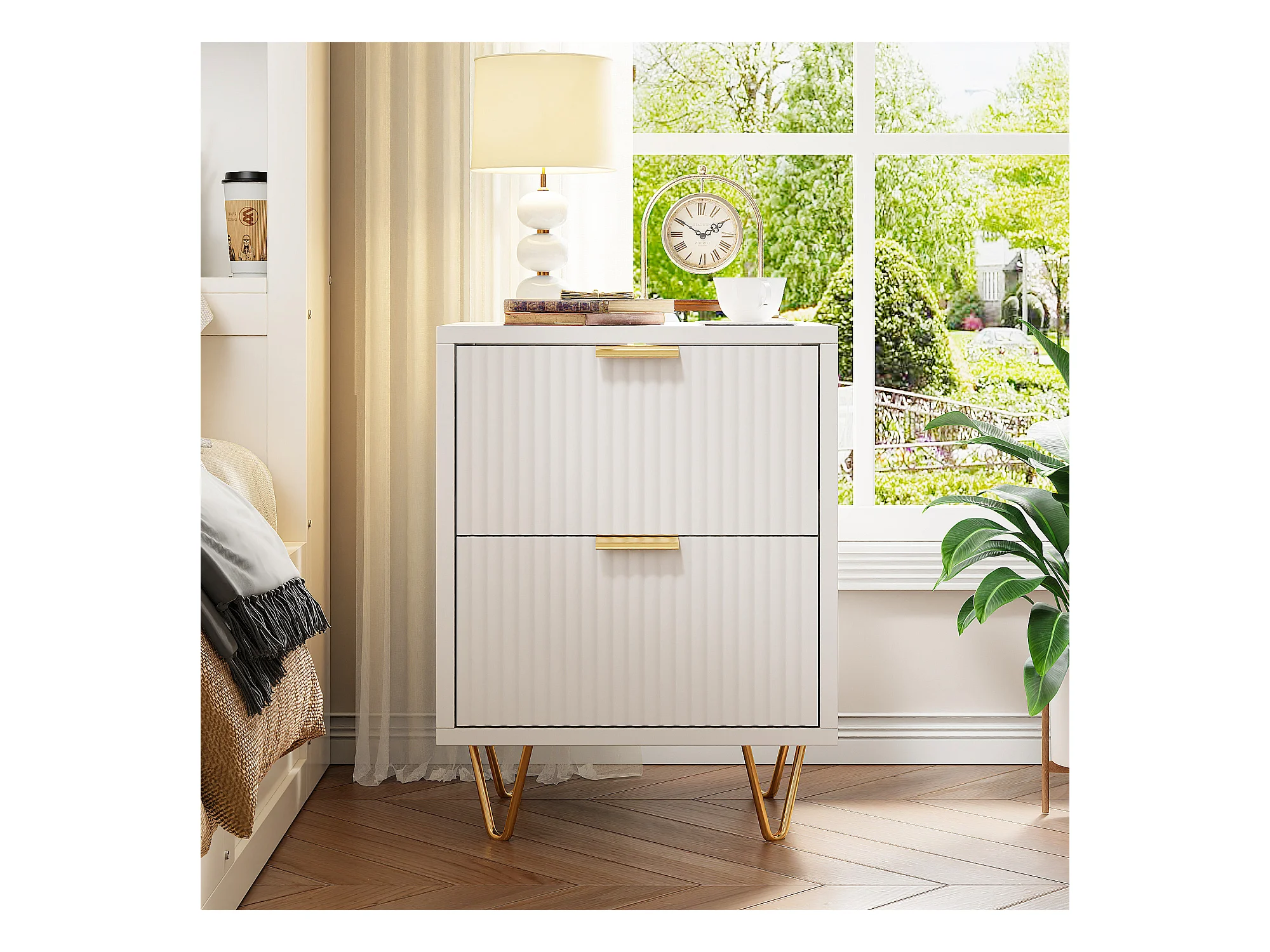Table de chevet haute blanche avec 2 tiroirs, Fiano Nordic, 60x40x30 cm