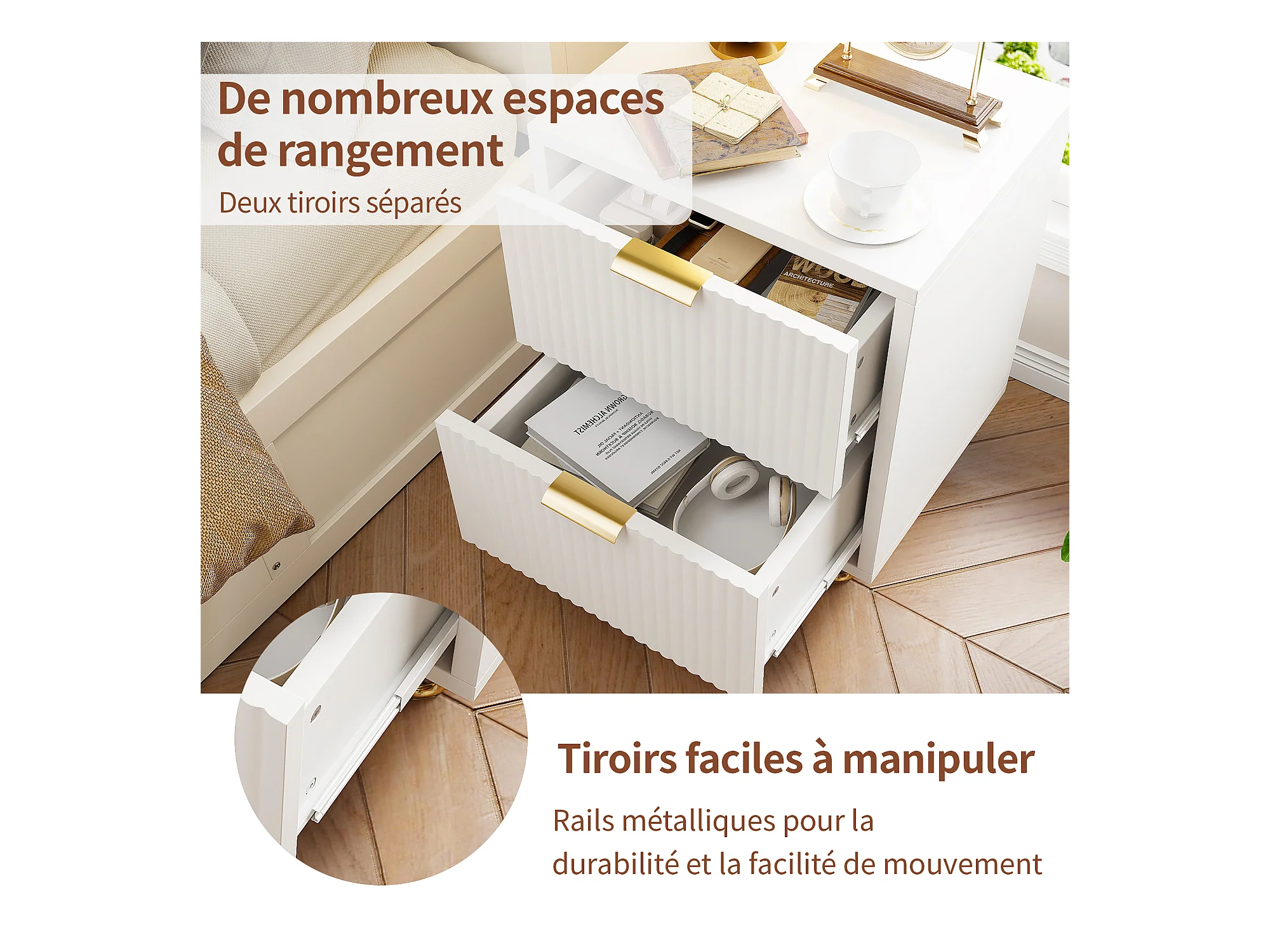 Table de chevet 2 tiroirs Ottavia contemporaine blanche 40x50 cm Chambre