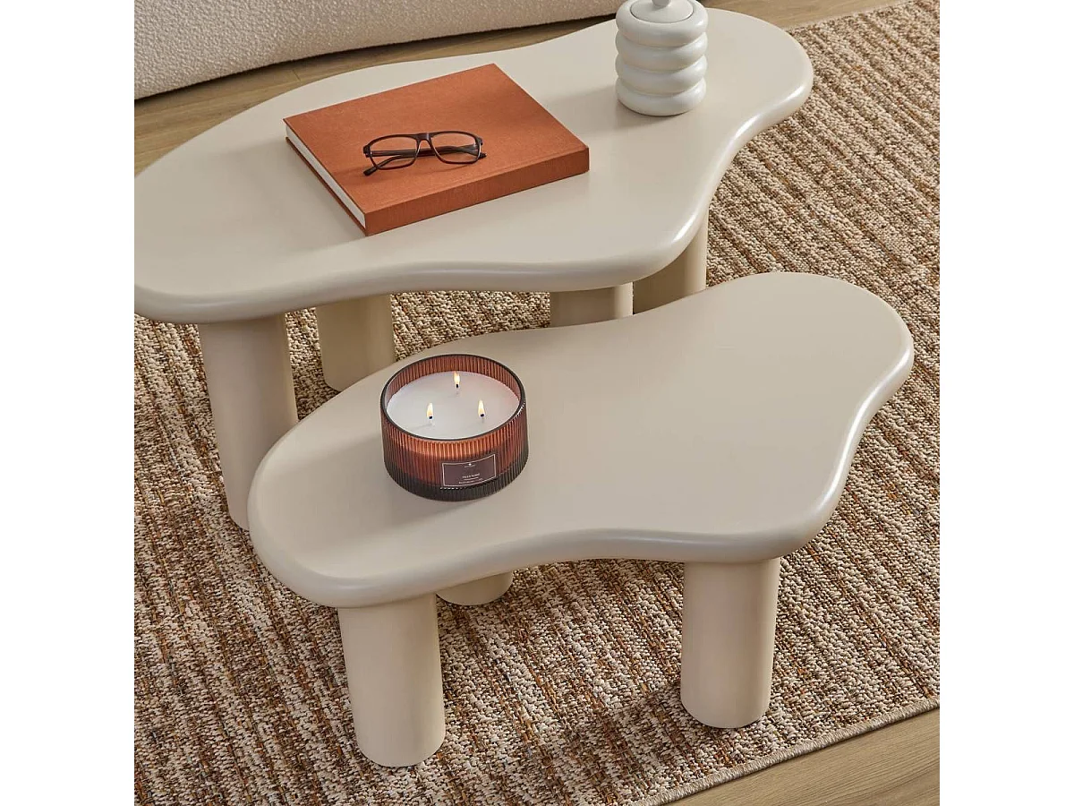 Lot de 2 tables basse coloris ivoire - Longueur 80/100 x largeur 46,5/60 x Hauteur 30/40 cm