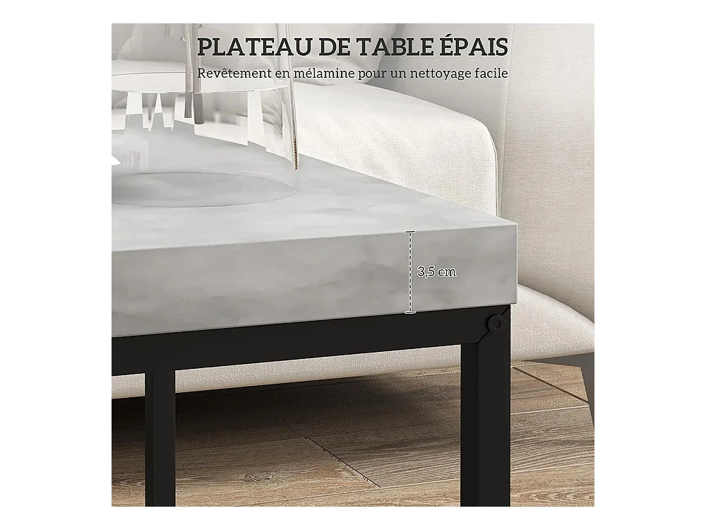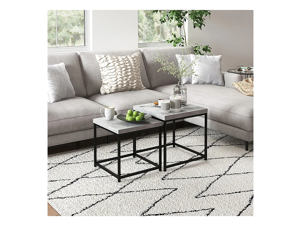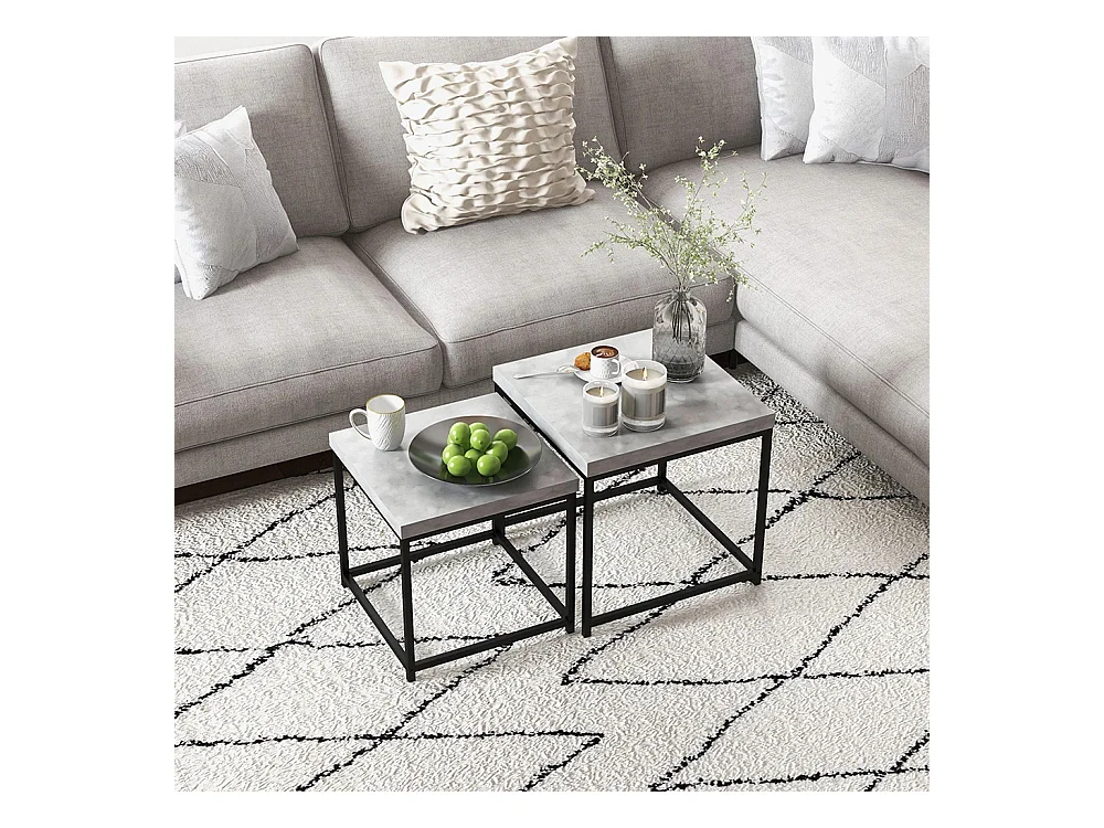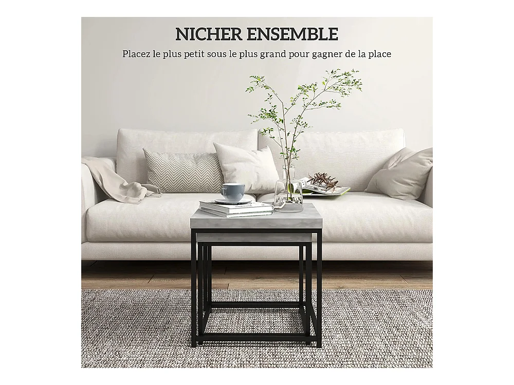 Lot de 2 tables basses carrées tables de salon cadre en acier et plateaux en bois gris