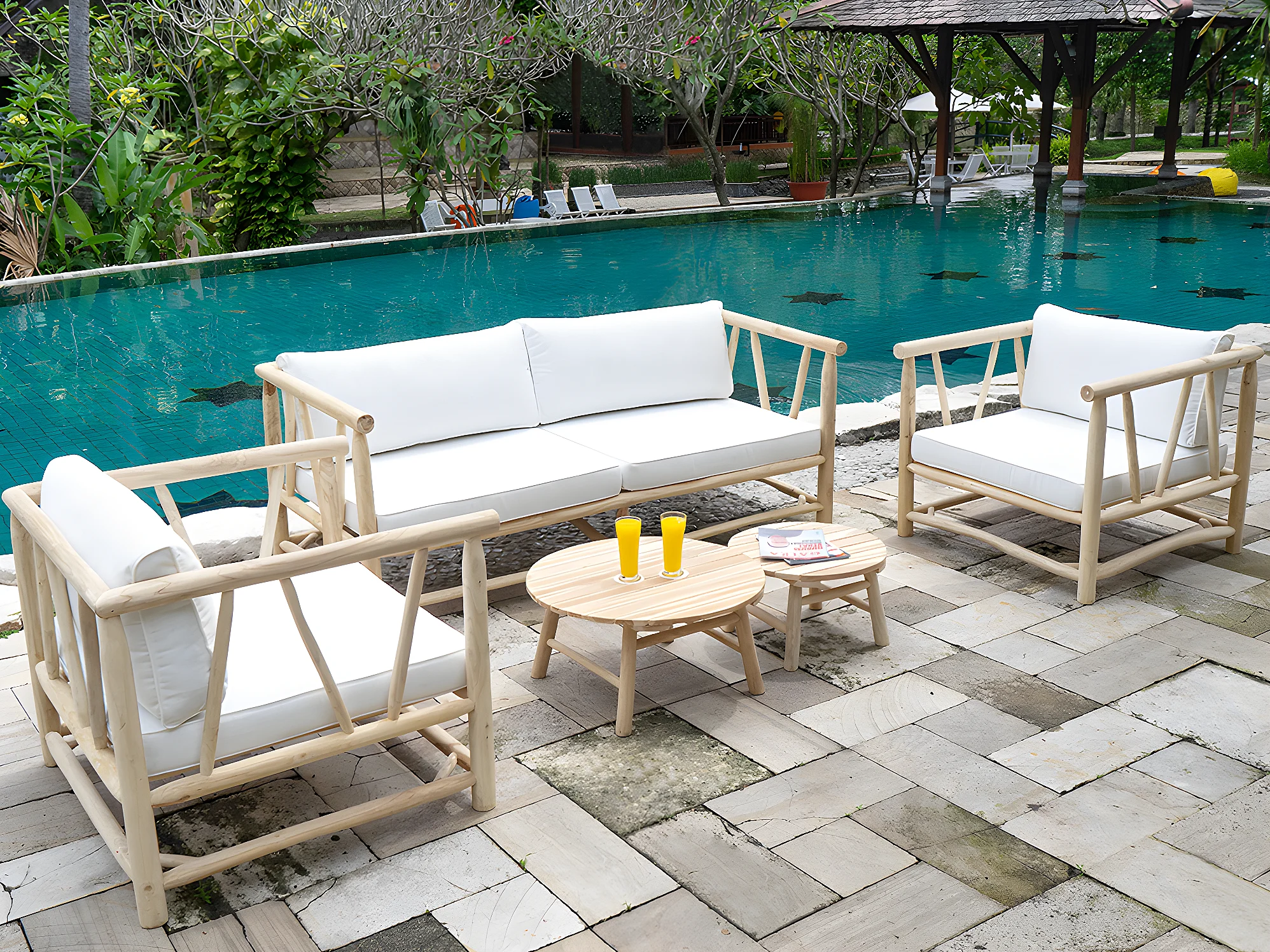 Lot de 2 tables basses de jardin en teck - Naturel clair - TULUM de MYLIA
