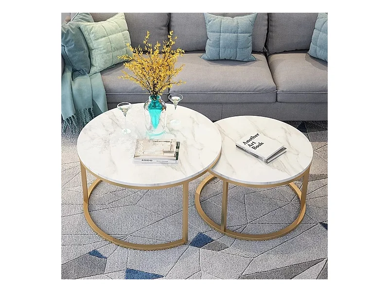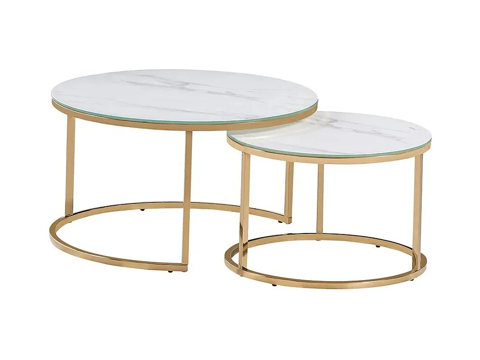 Lot de 2 tables Basses Gigogne ARTO Gold et plateau en verre Marbré Blanc