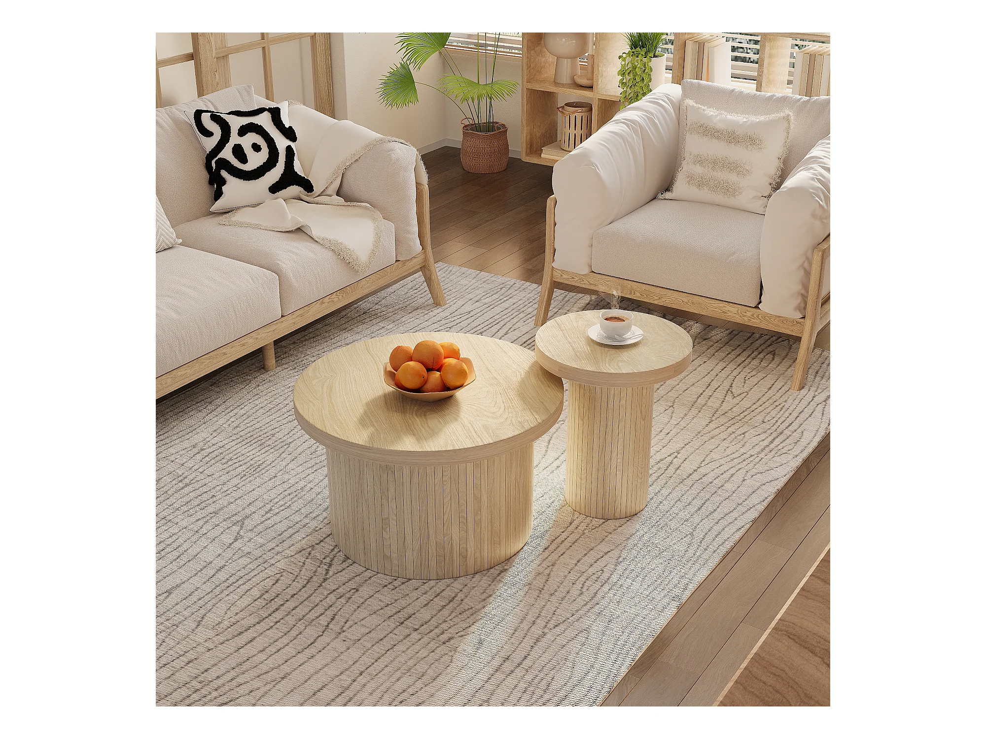 Lot de 2 tables basses gigognes, table d'appoint - D 66 x H 40 cm + D 40 x H 46 cm - MDF - Naturel