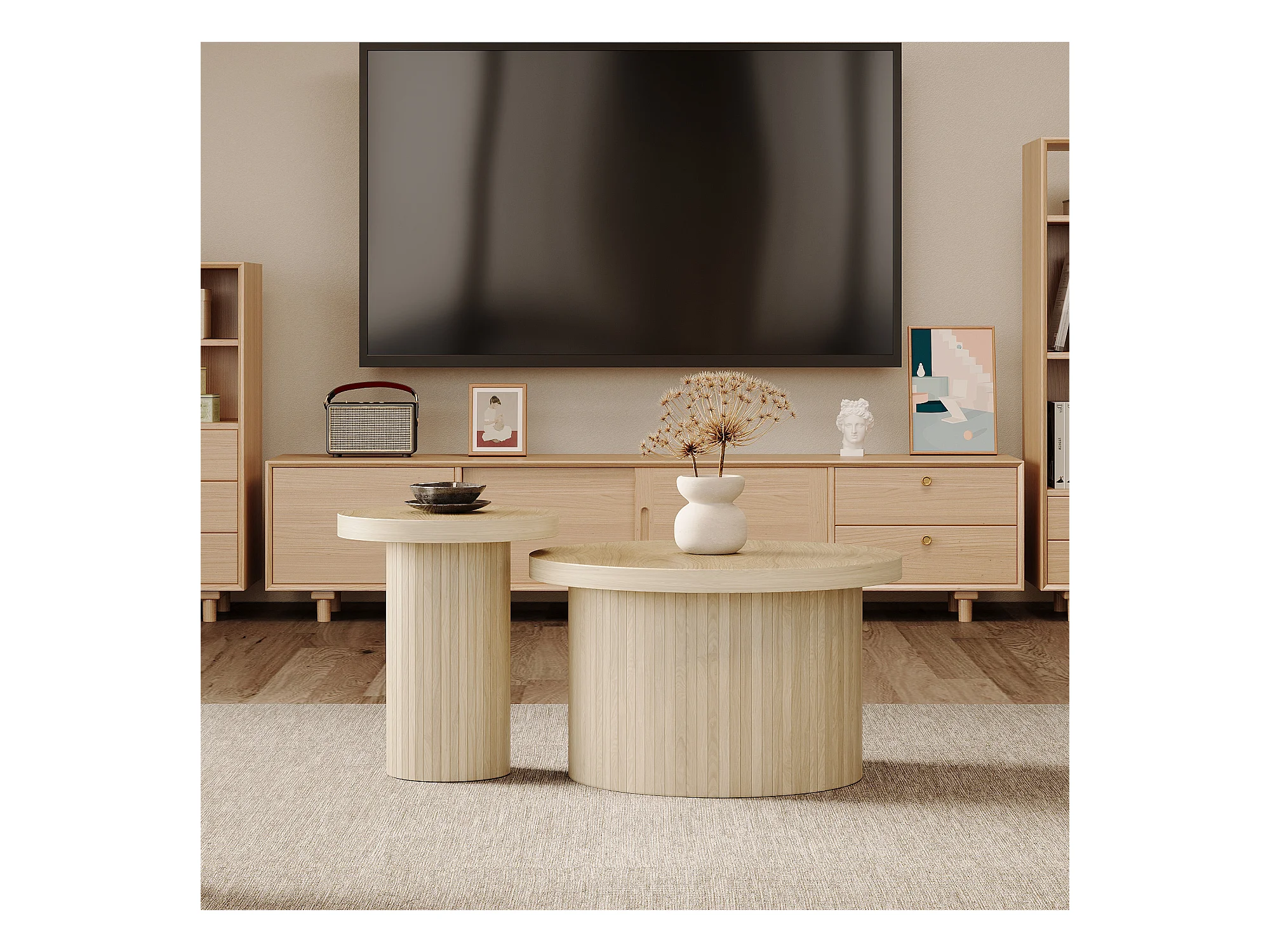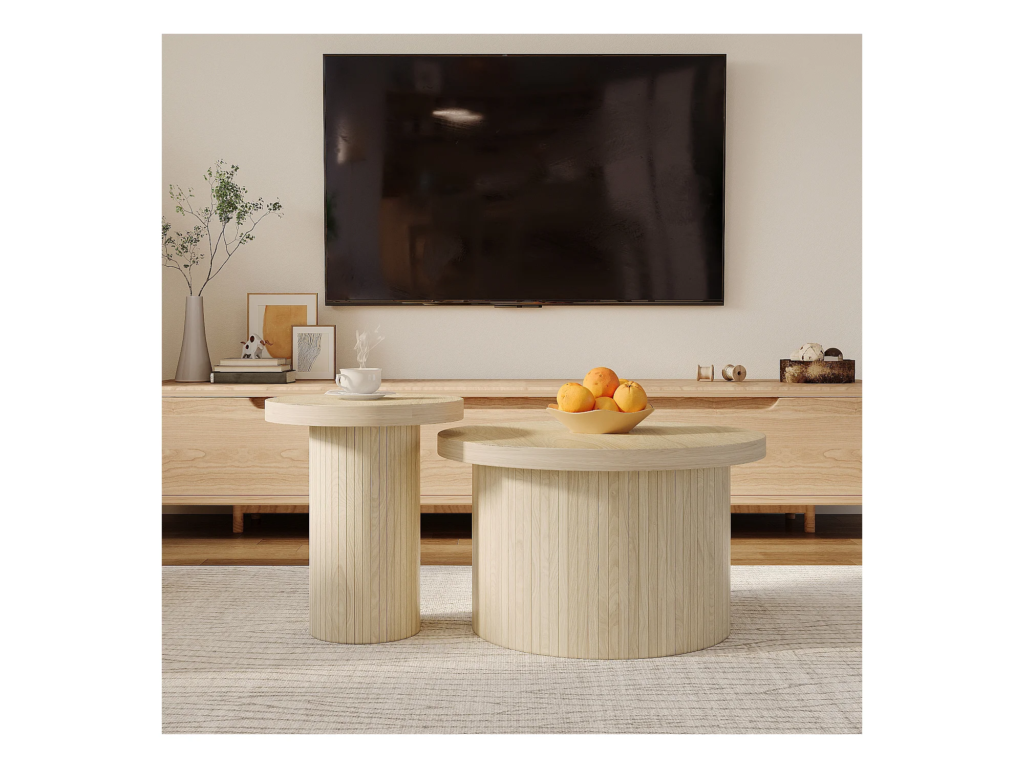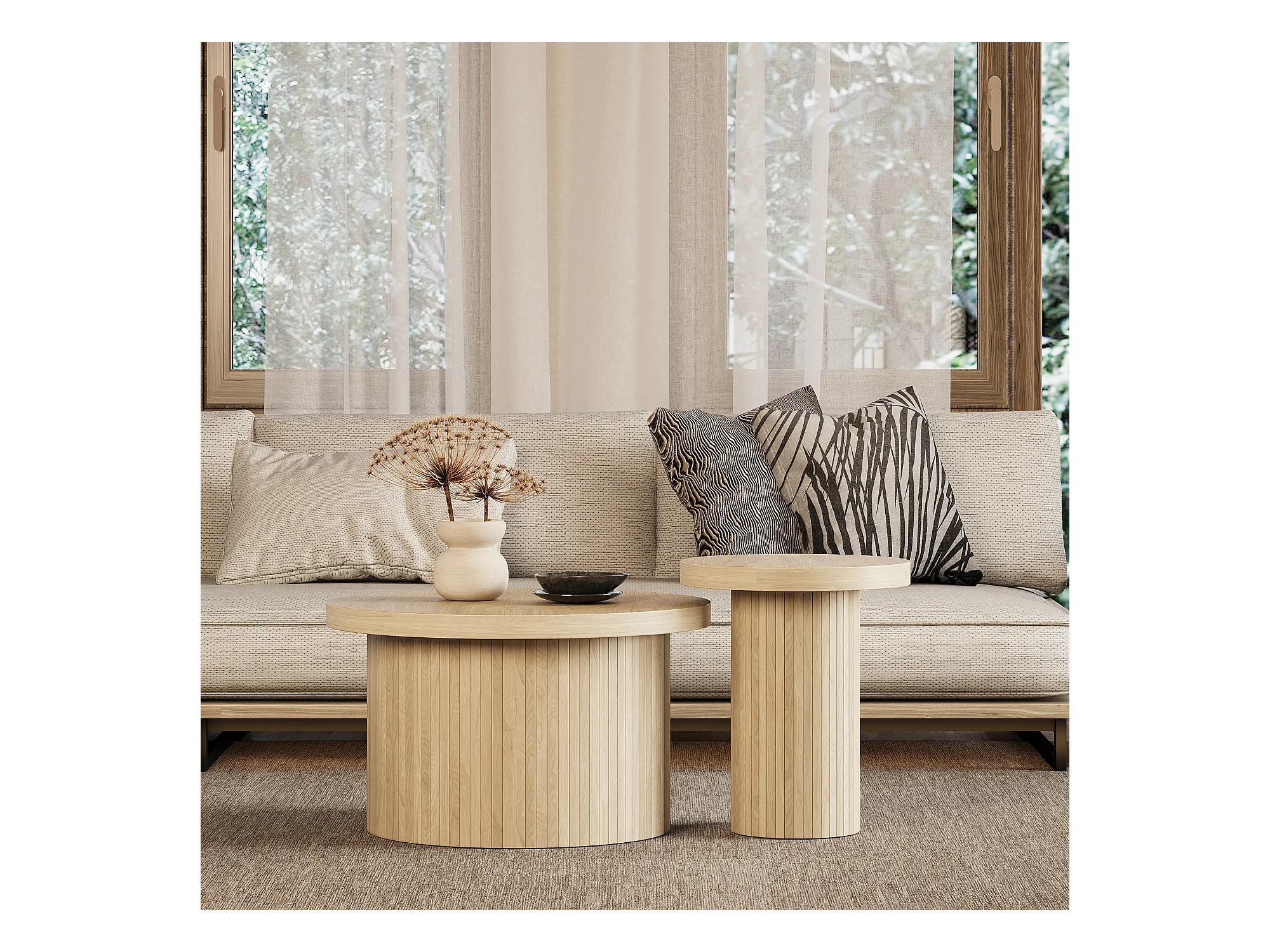 Table basse gigogne ronde - MDF - Naturel