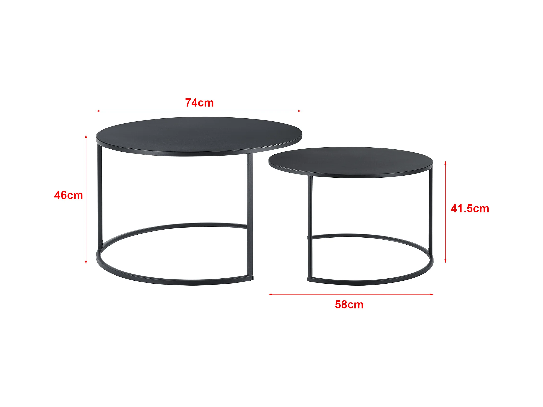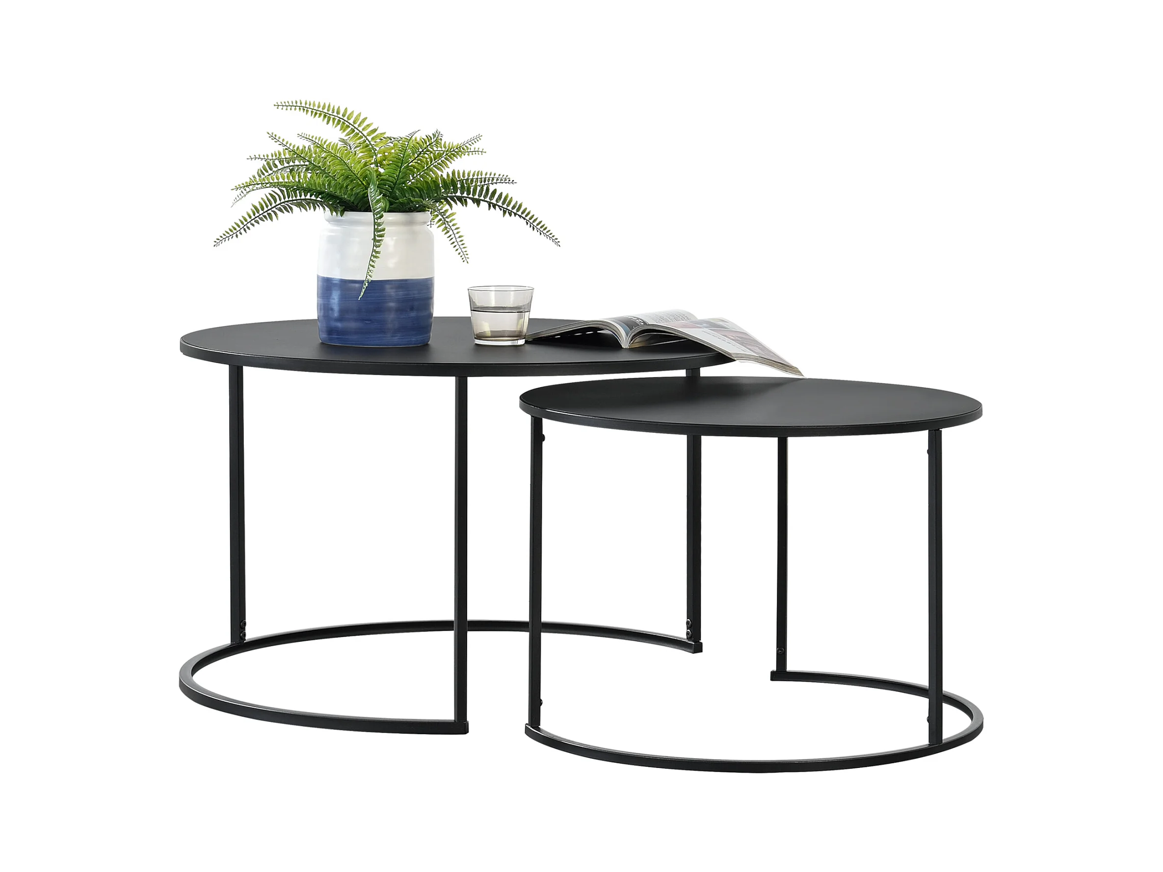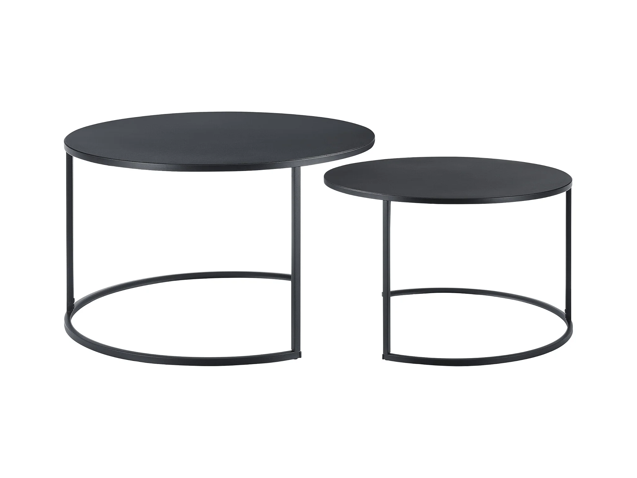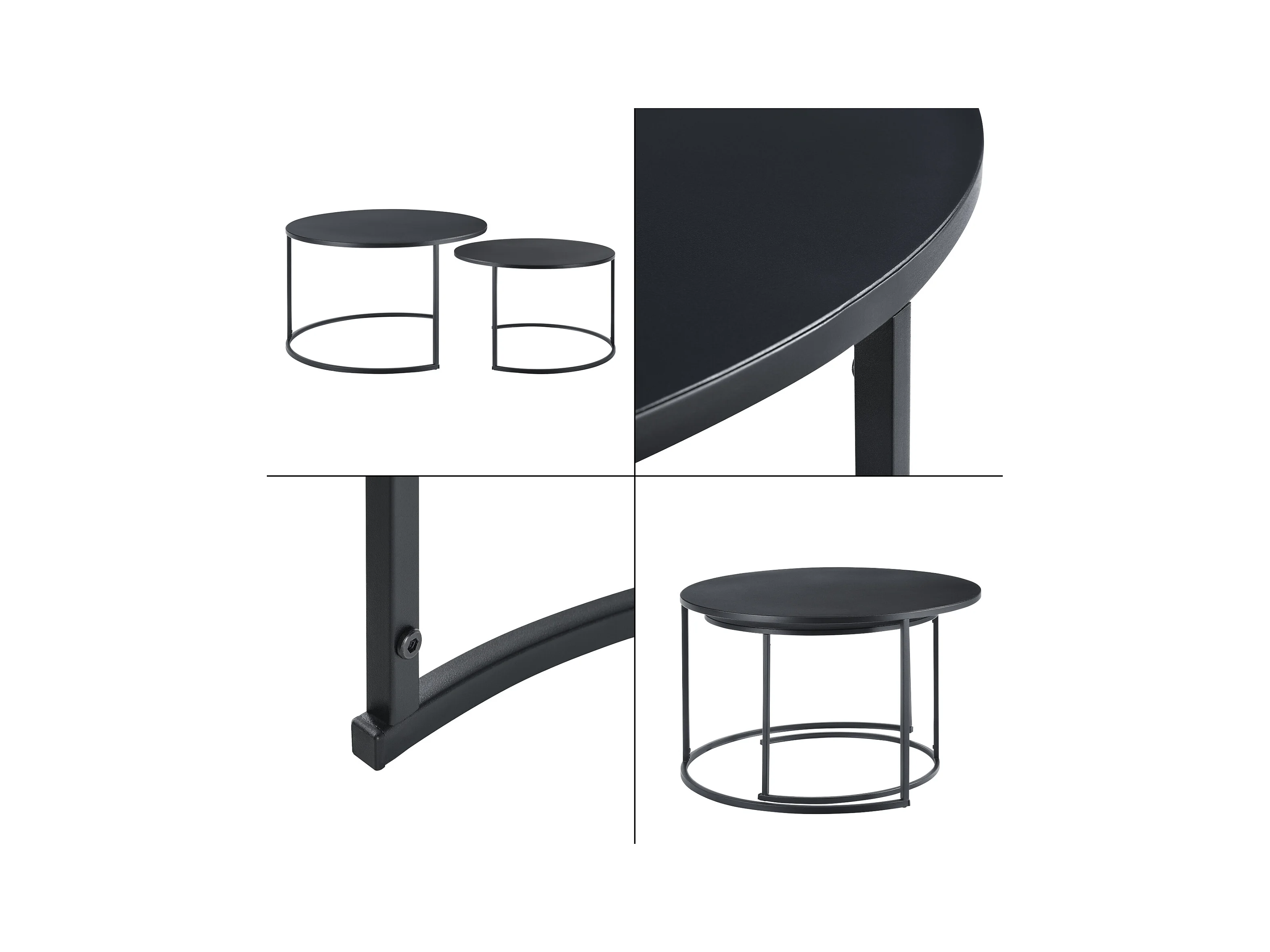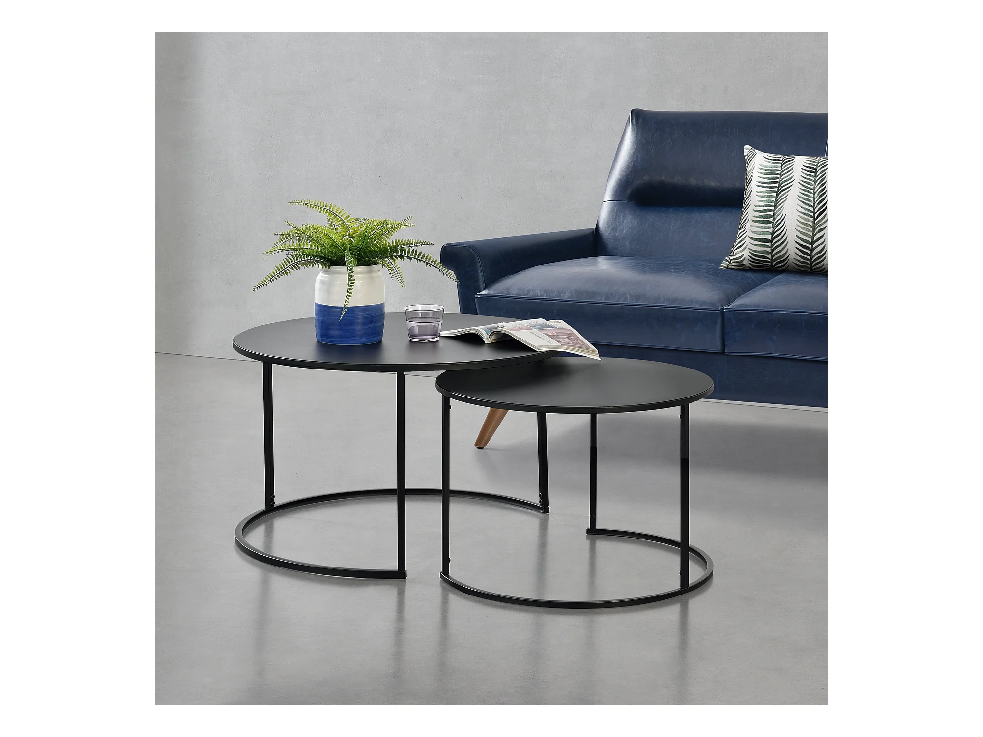 Lot de 2 Tables Basses Korenica Rondes Gigognes Noir [en.casa]