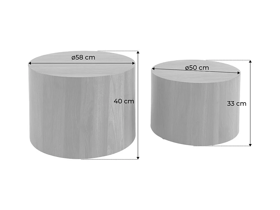Lot de 2 tables basses rondes effet noyer. Ø58 x H 40cm / Ø50 x H 33cm SYLVA
