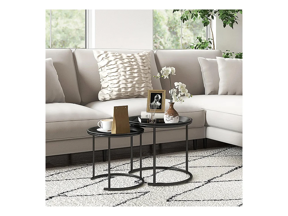 Lot de 2 Tables Basses Korenica Rondes Gigognes Noir [en.casa]
