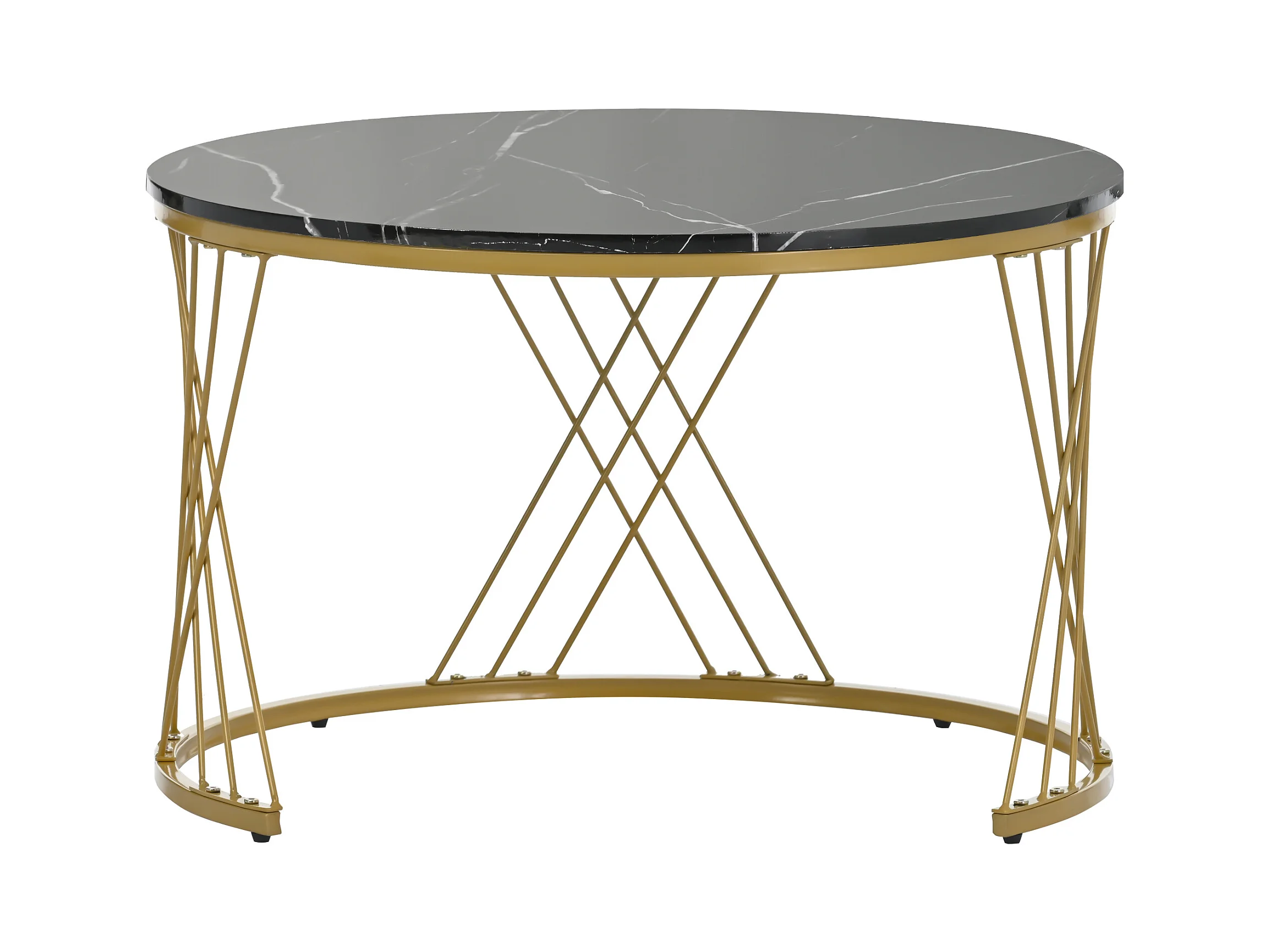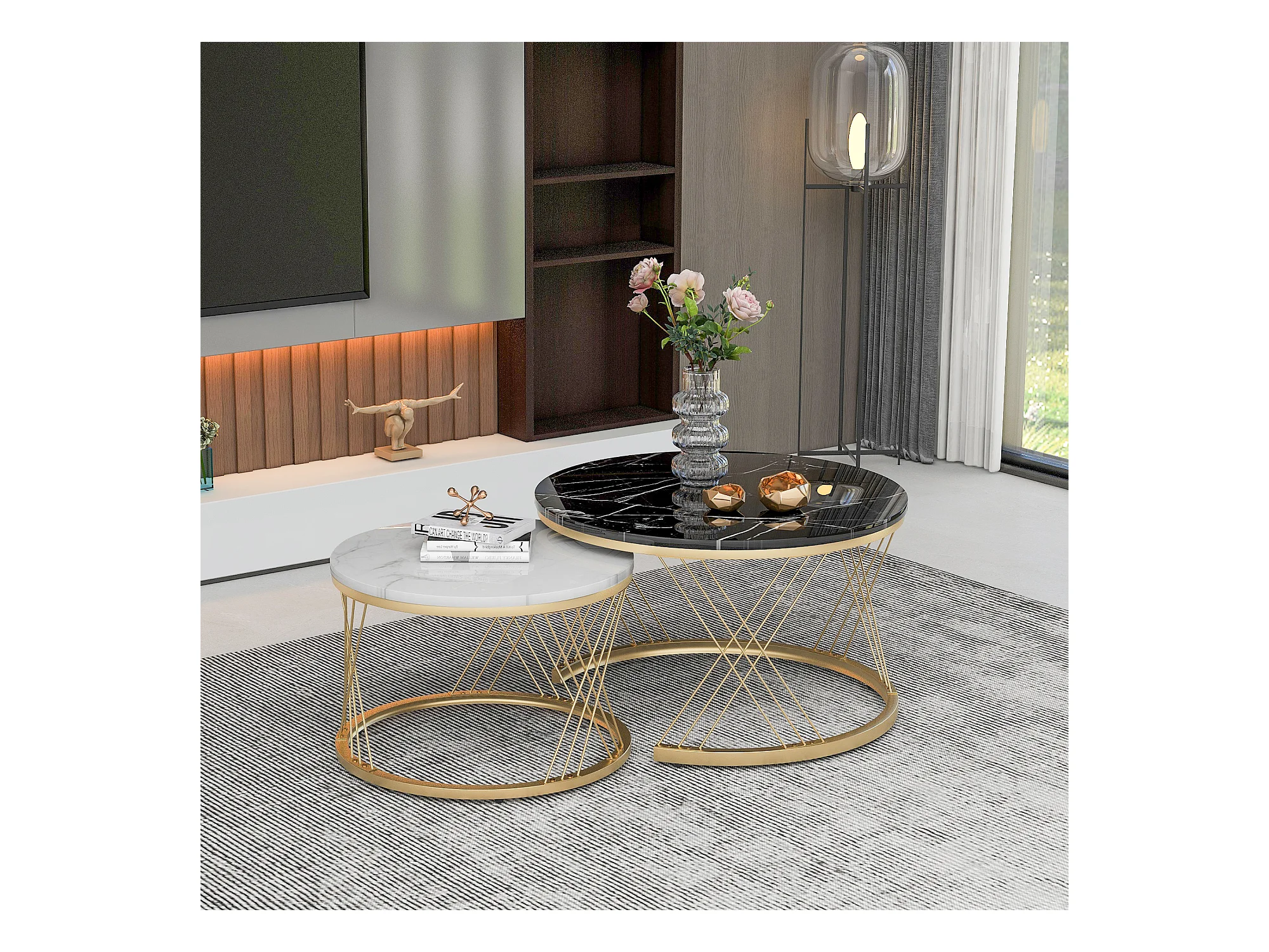 Lot de 2 tables basses - Tables basses gigognes - cadre doré - plateau de table effet marbre