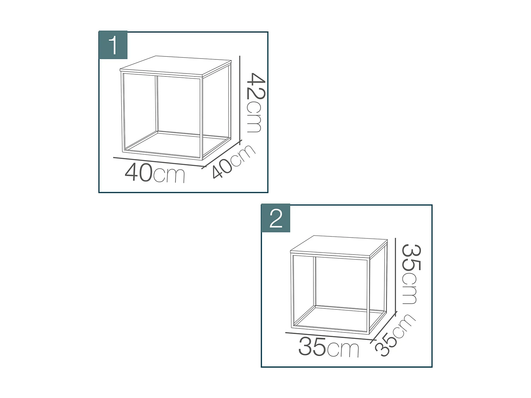 Lot de 2 tables d'appoint carrées, bout de canapé moderne en bois avec pieds métal - Longueur 34 x profondeur 34 x Hauteur 37 cm