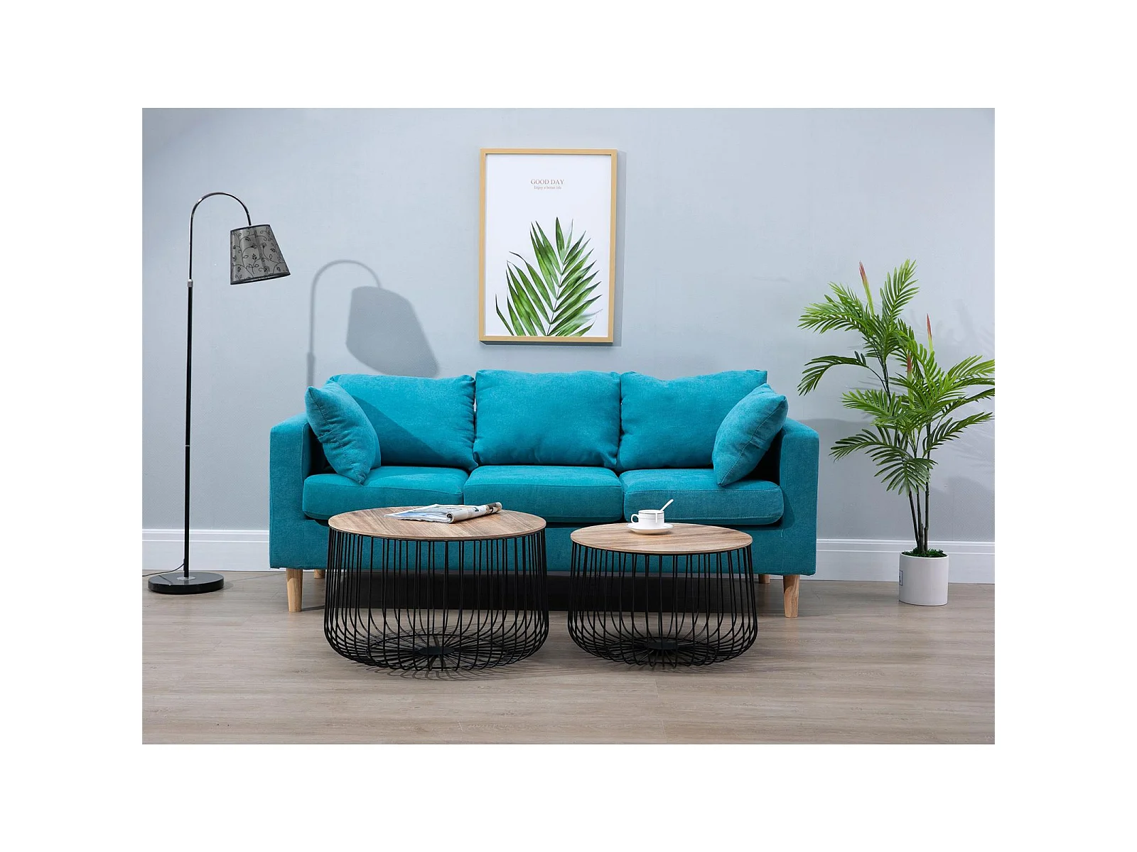 Lot de 2 tables d'appoint PADOVA paniers en métal tables à café tables basses rondes bouts de canapé vintage décor bois naturel