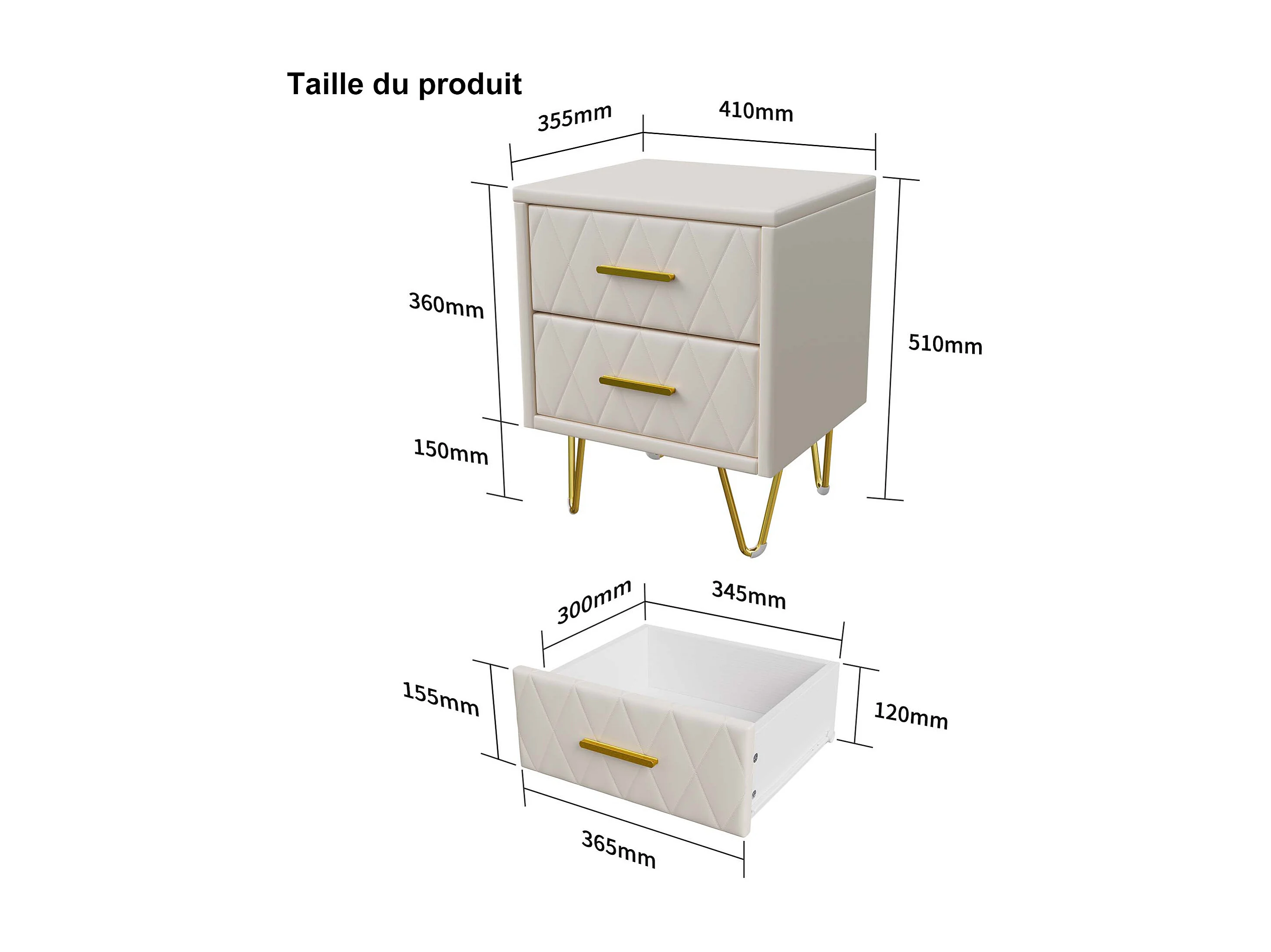 Lot de 2 tables de chevet beige en cuir PU avec 2 tiroirs – Design moderne, capitonnage doux et grand espace de rangement