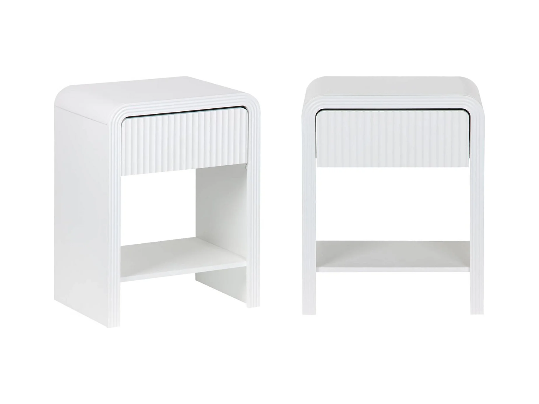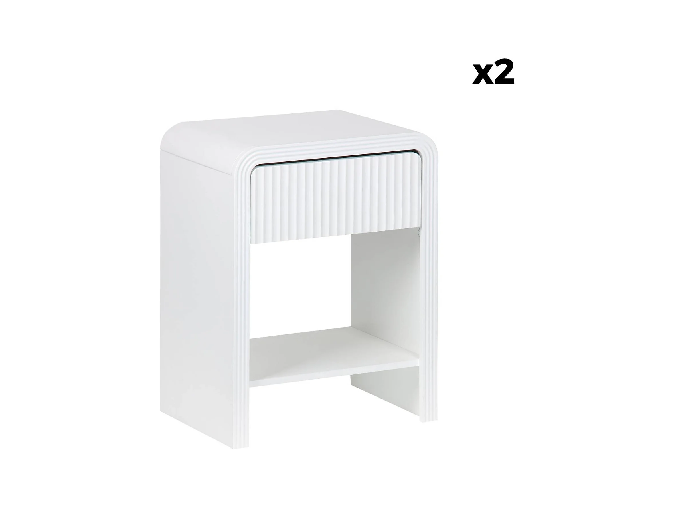 Lot de 2 tables de chevet effet bois blanc rainuré 1 tiroir. 1 étagère