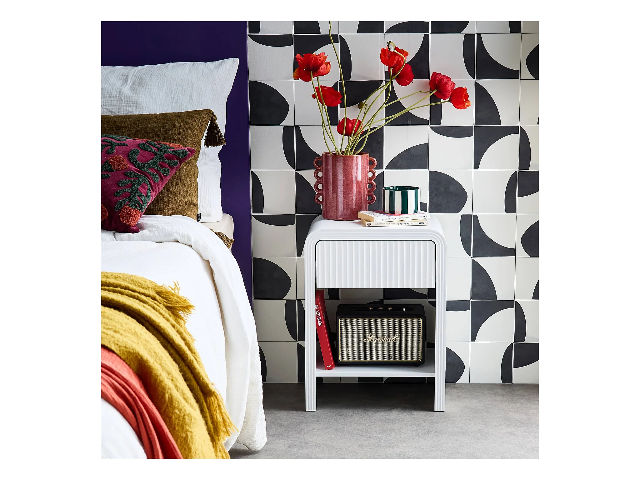 Table de chevet suspendue blanche avec tiroir et étagère VISBY