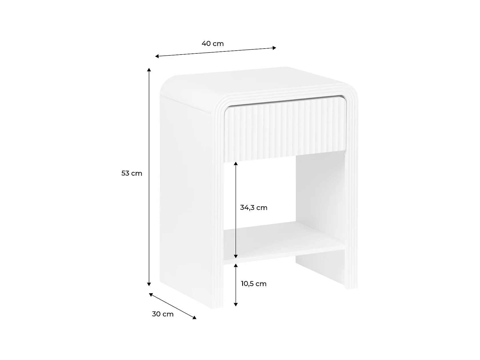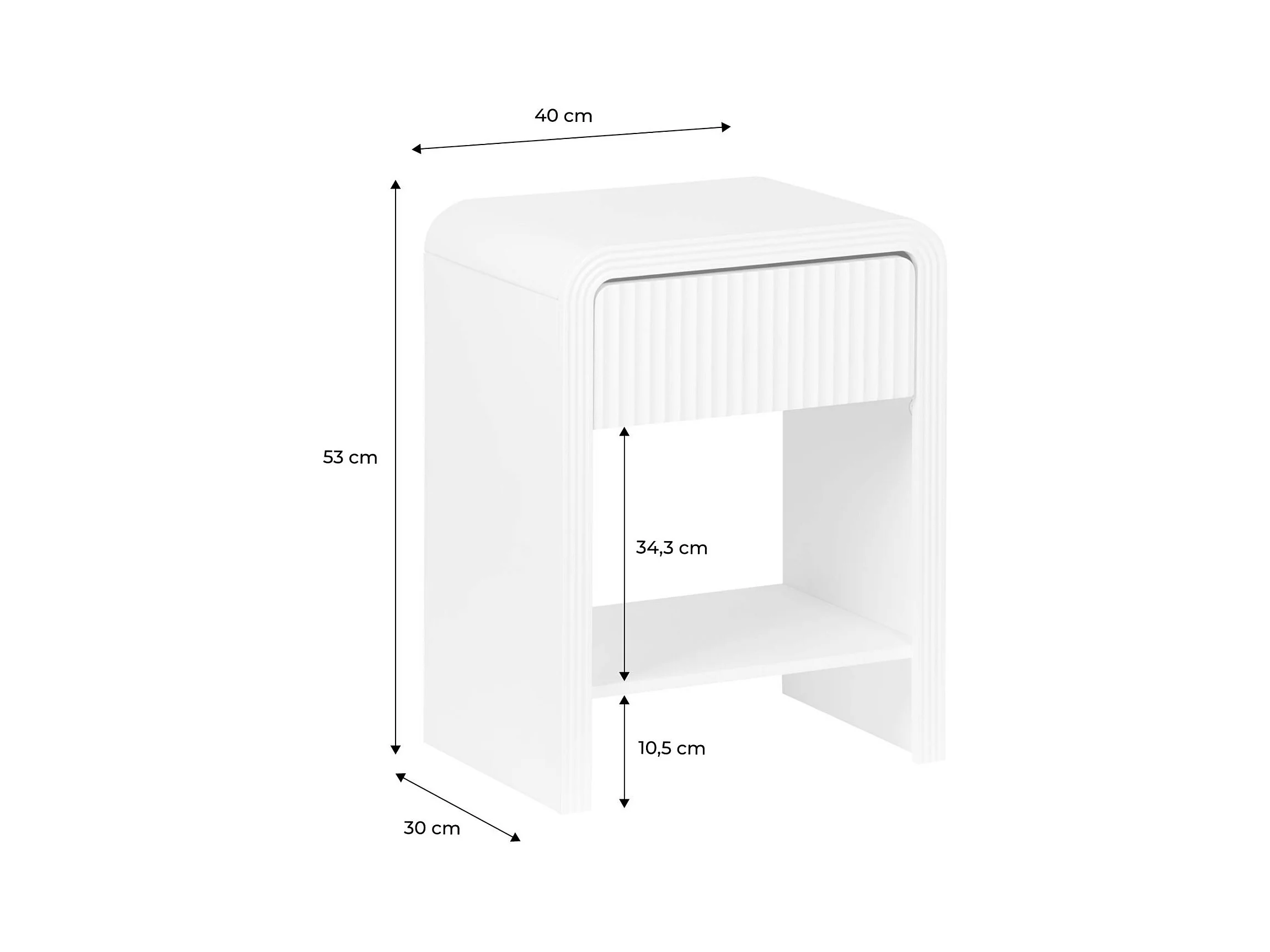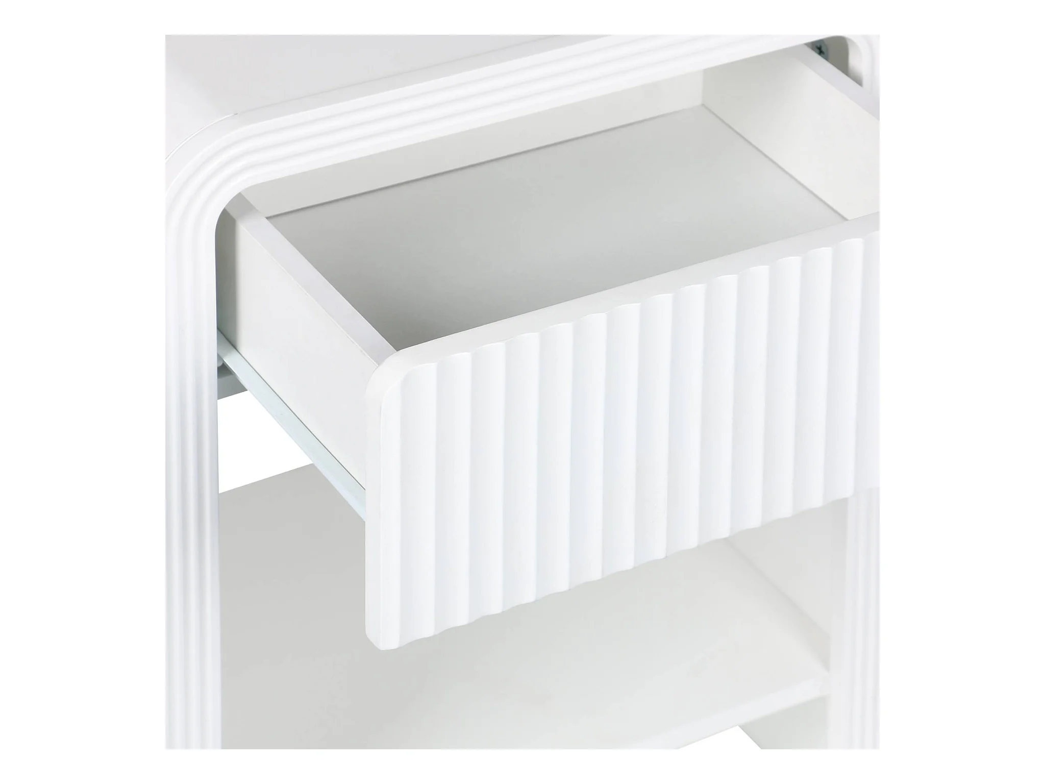 Table de chevet effet bois blanc rainuré 1 tiroir. 1 étagère