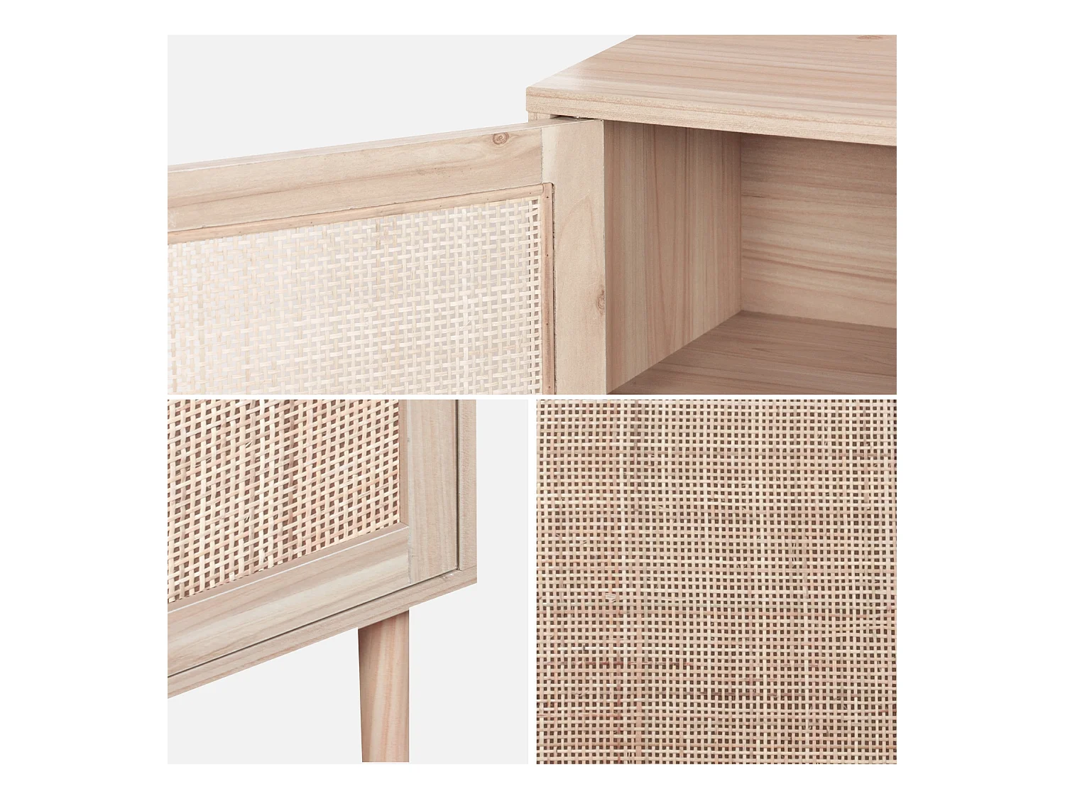 Table de chevet en cannage et décor bois - Camargue - 40x30x58cm - 2 niveaux - 1 porte - pieds droits