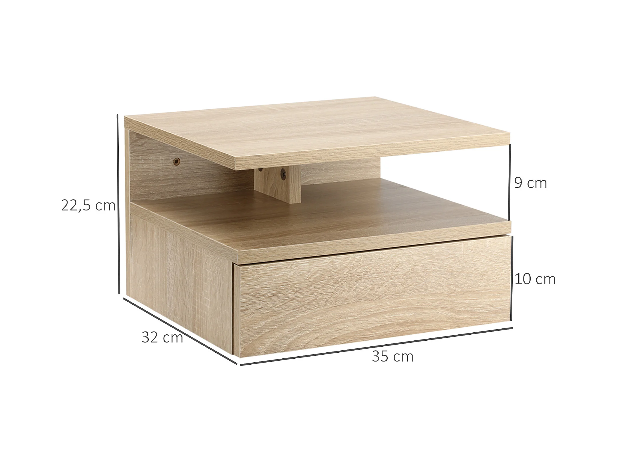 Lot de 2 chevets tables de nuit murales - tiroir coulissant, niche, plateau - dim. 37L x 32l x 21H cm - panneaux aspect chêne clair