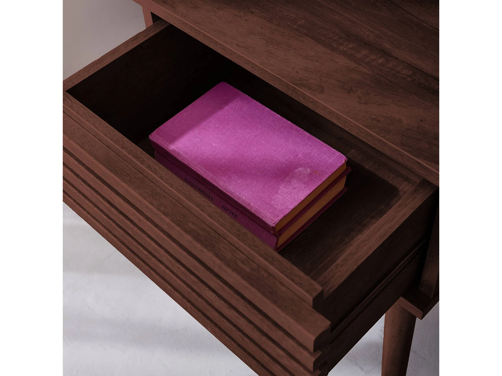Table de chevet deux tiroirs. décor bois de noyer et piétement en pin - Linear