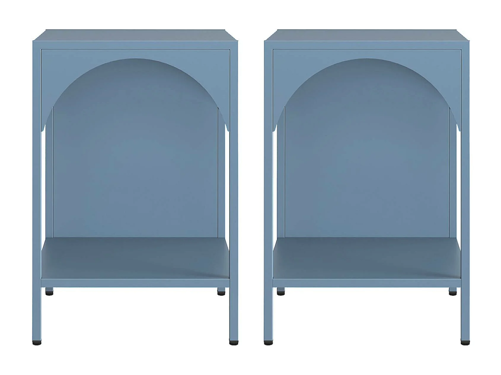 Lot de 2 tables de chevet - 1 tiroir et 1 niche - Bleu - BOGDAN