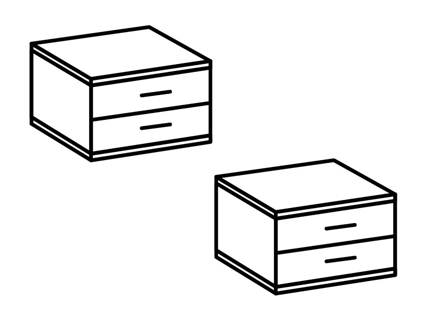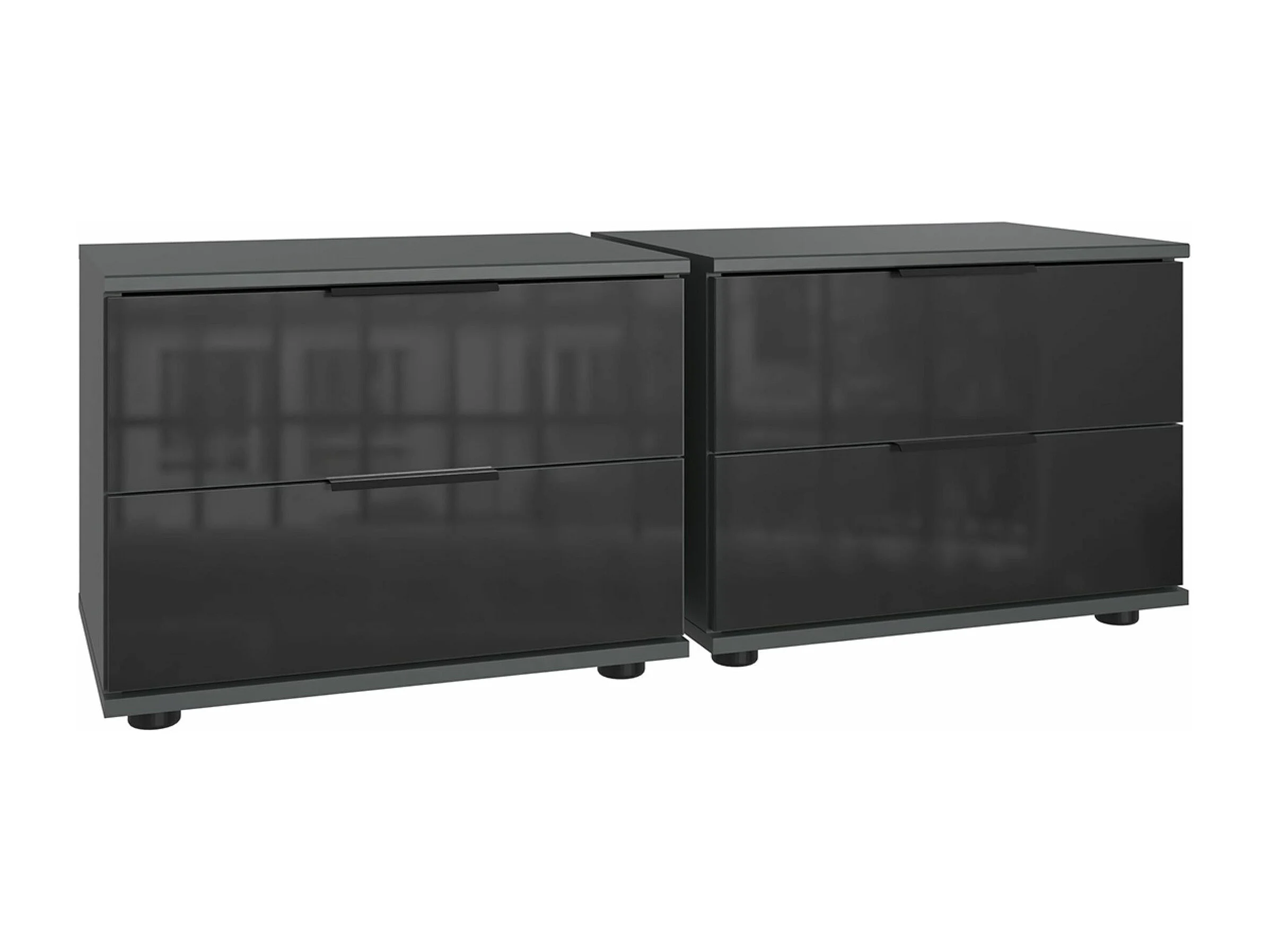 Lot de 2 tables de chevets, table de nuits avec 2 tiroirs coloris Graphite, et verre noir