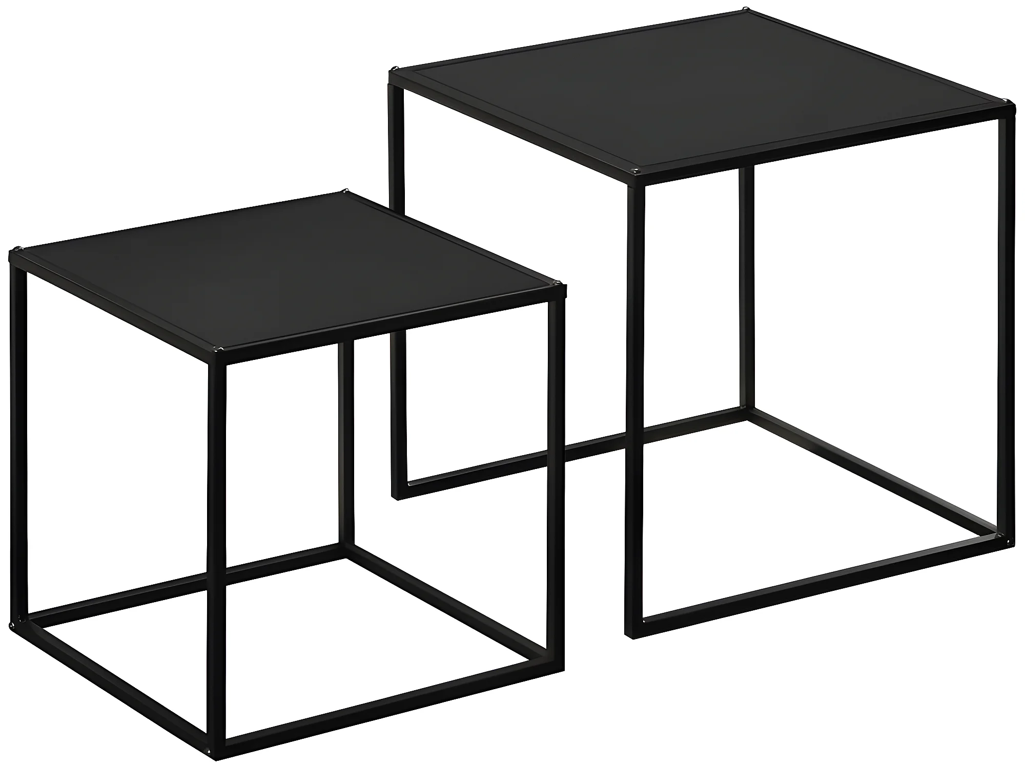 Lot de 2 tables basses gigognes carrées style industriel en métal noir mat - dim. 40 et 35 cm