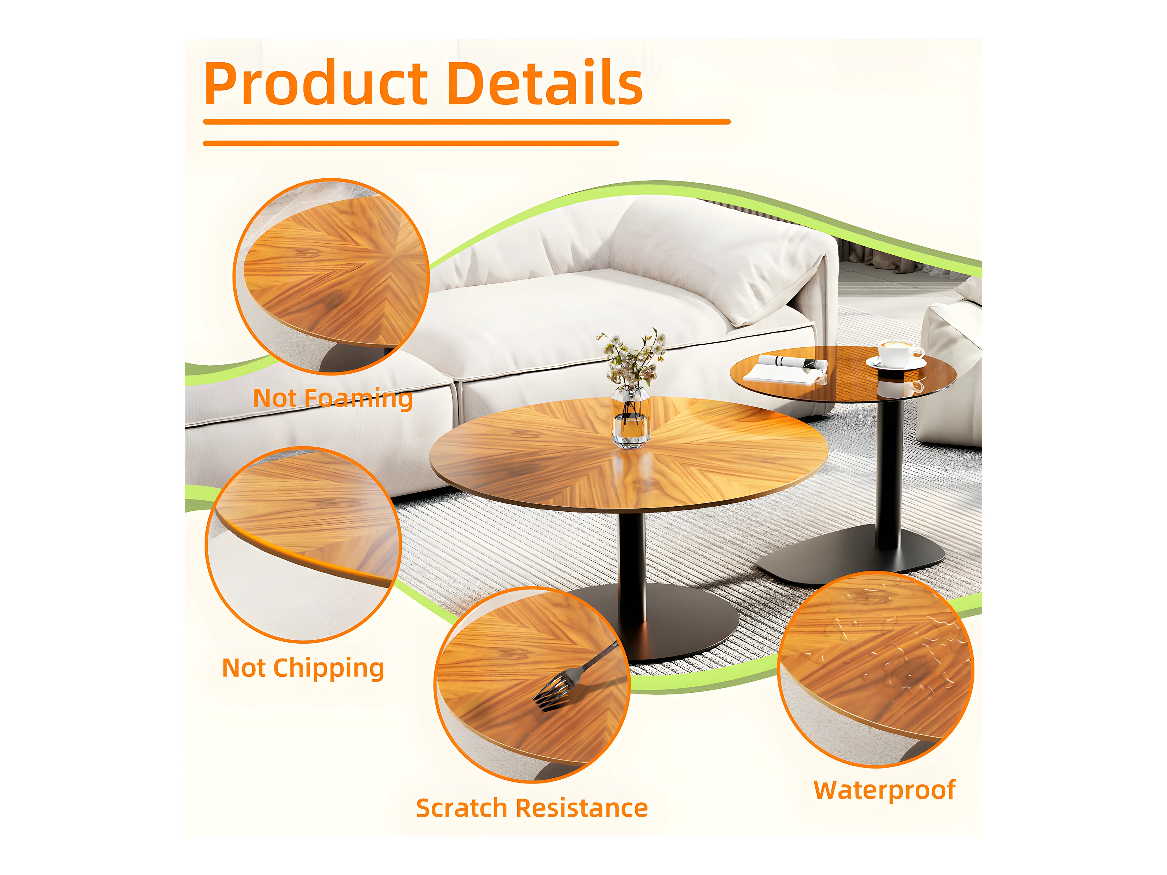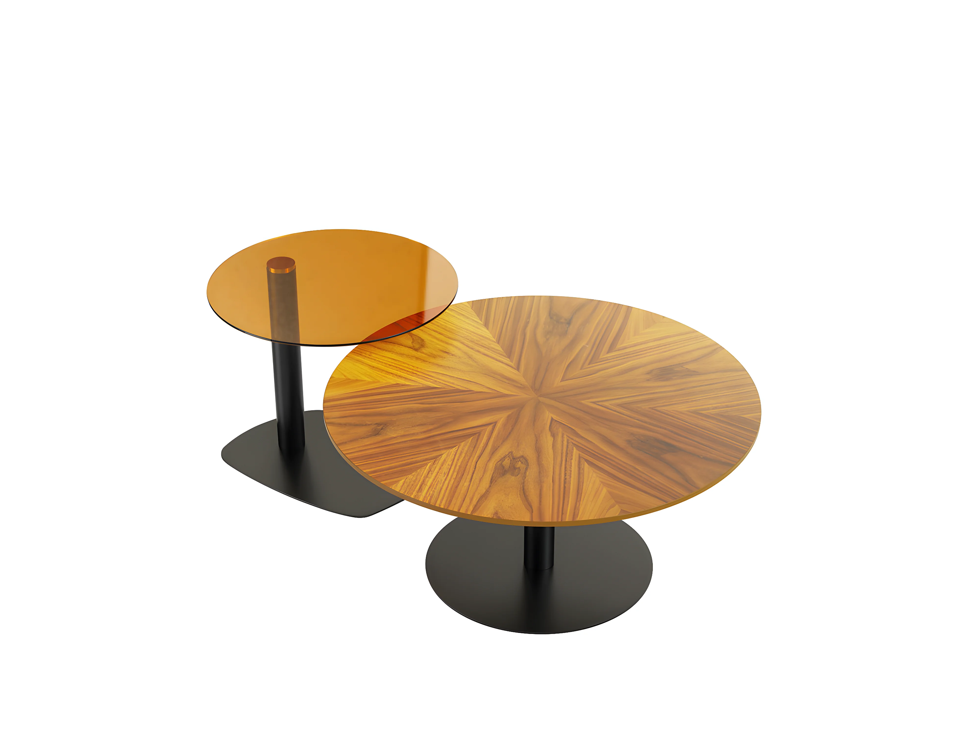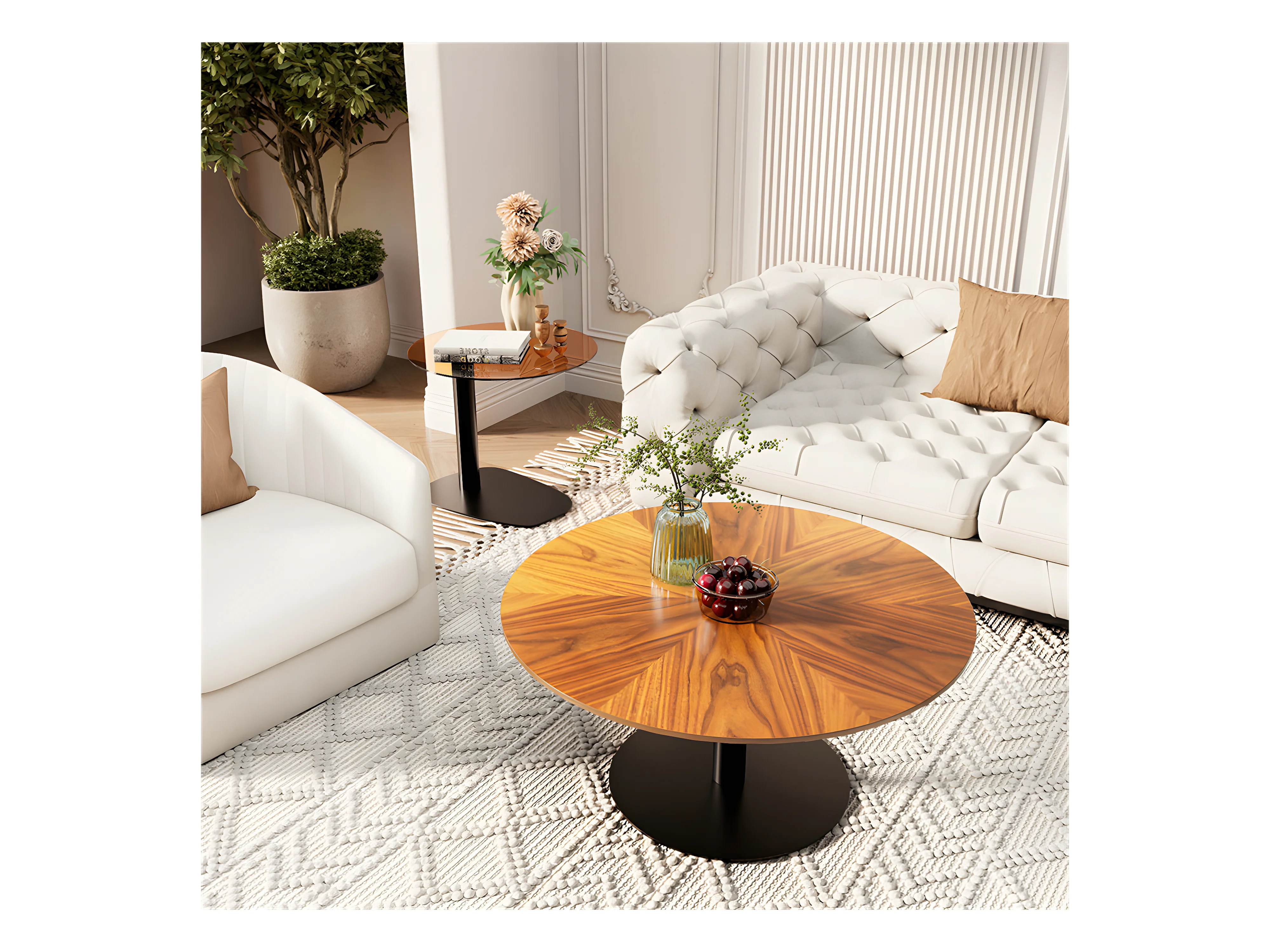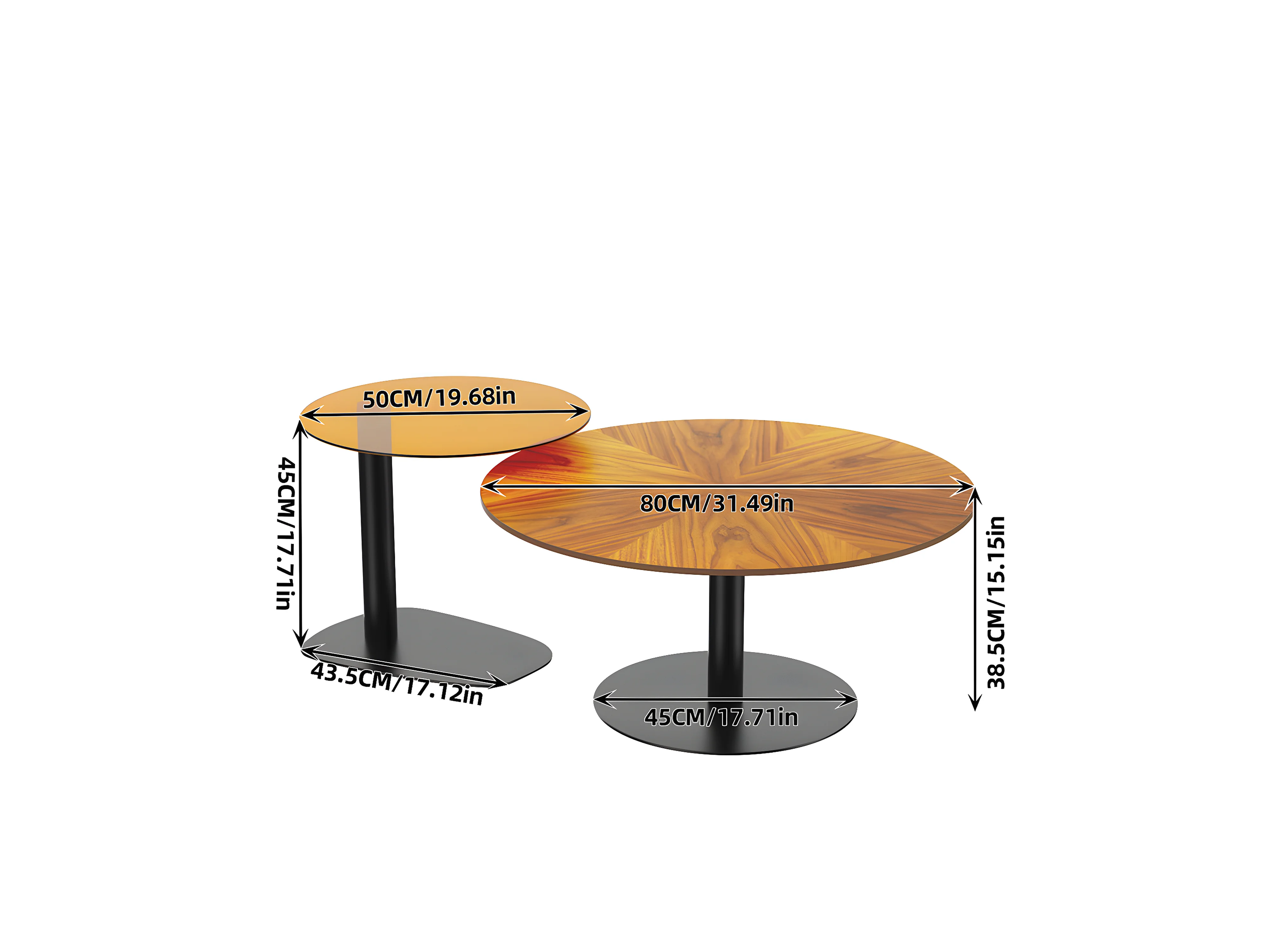 Lot de 2 tables gigognes de salon table basse ronde moderne verre et bois 80x80x38.5cm / 50x50x45cm 80x80x38.5m / 50x50x45cm