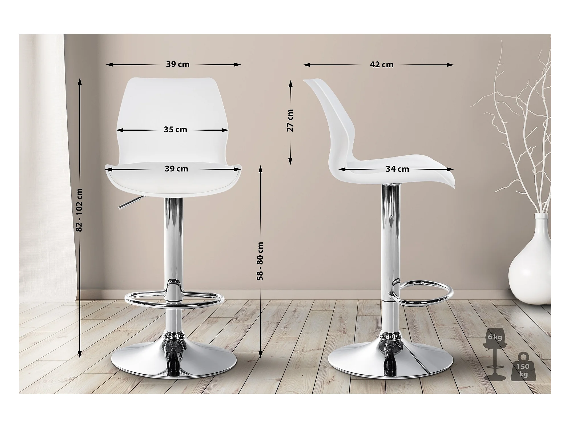 Tabouret de bar blanc hauteur ajustable