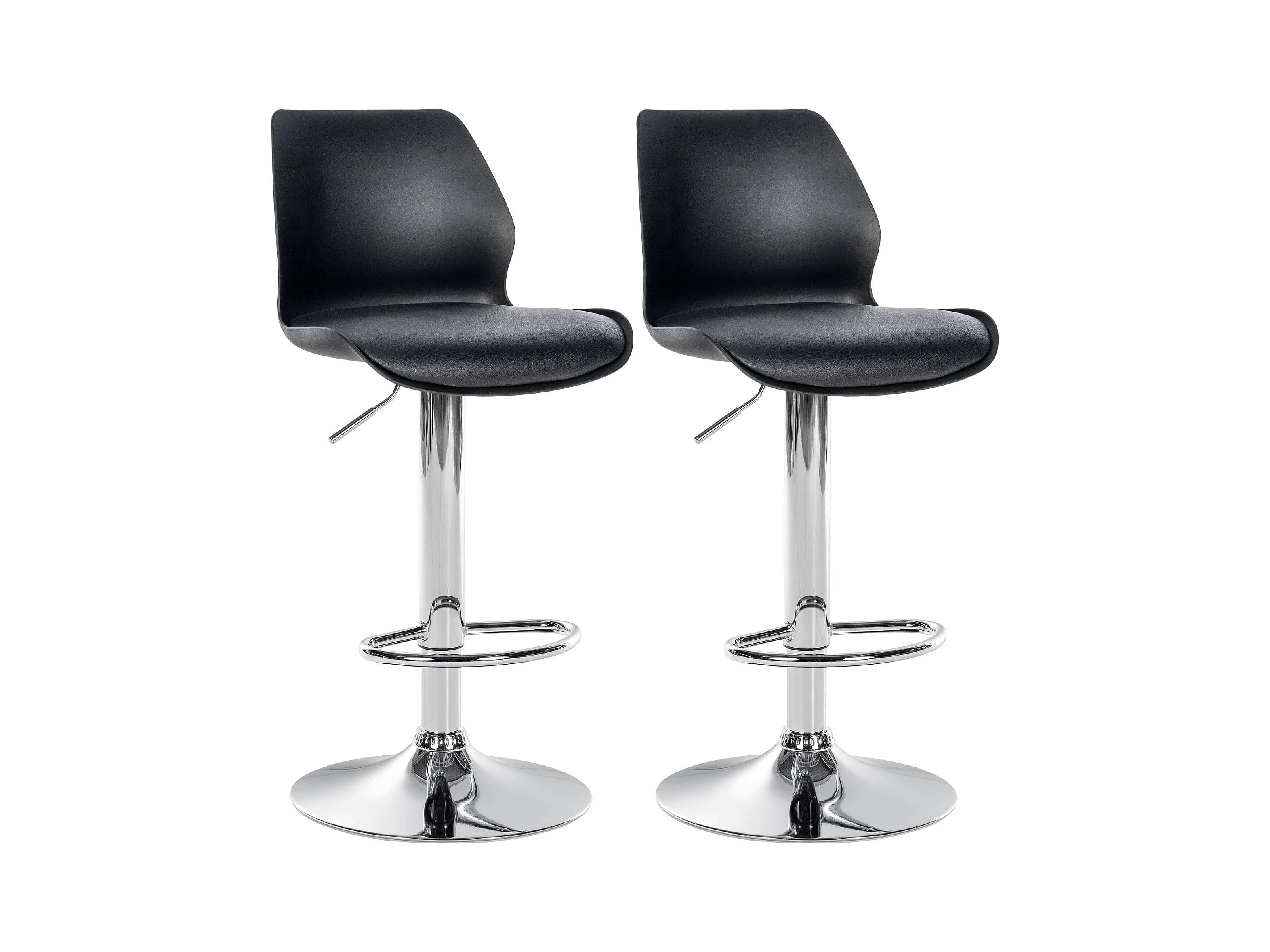 Lot de 2 Tabouret de bar - Plastique & Chrome - Noir - Almada