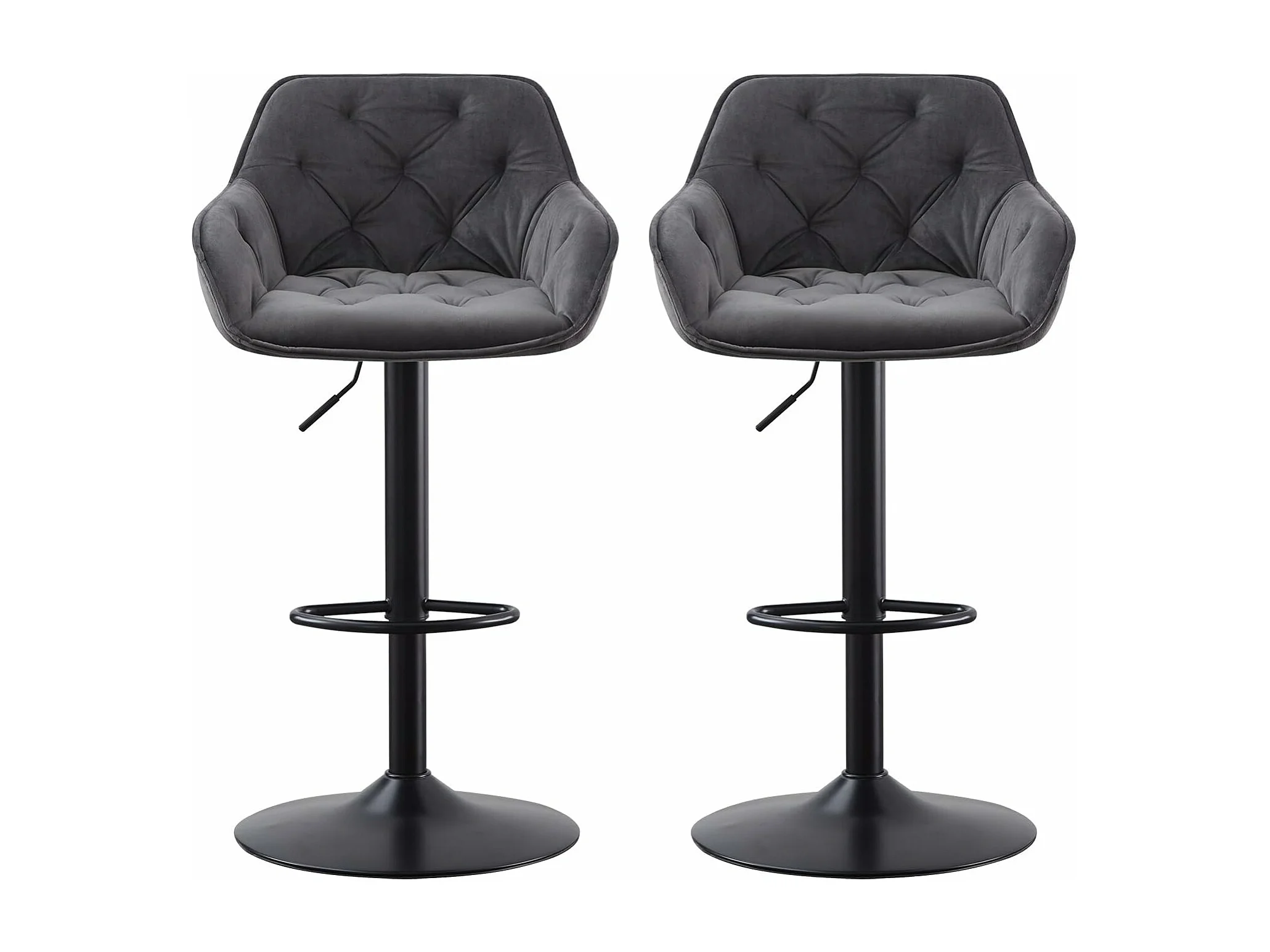 Lot de 2 Tabouret de Bar réglable en Hauteur Chaise Haute pour Bar avec Dossier siège rembouré en Velours Pied en métal (2, Gris)
