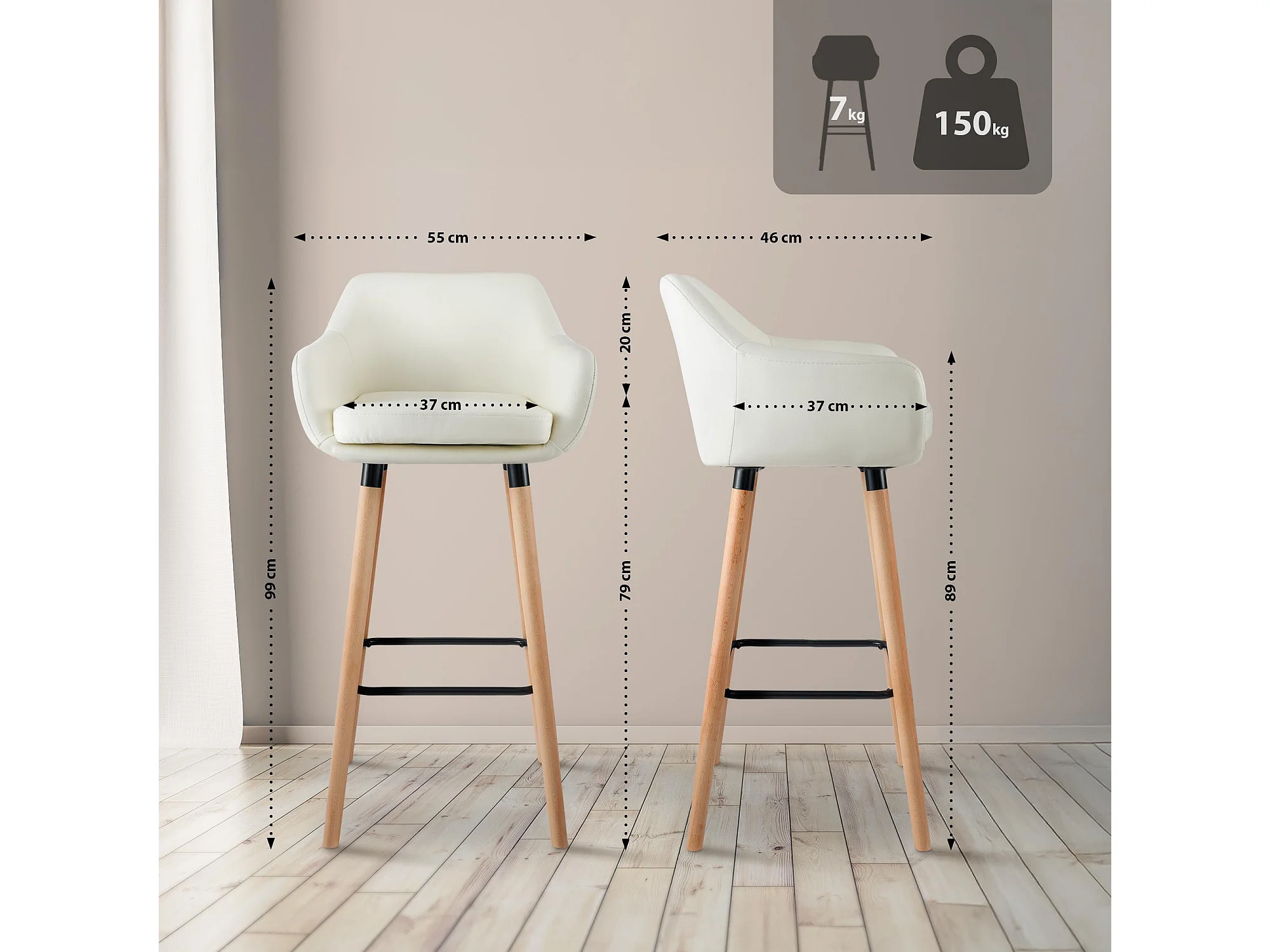 Lot de 2 Tabouret de bar - Similicuir - Crème - Grant