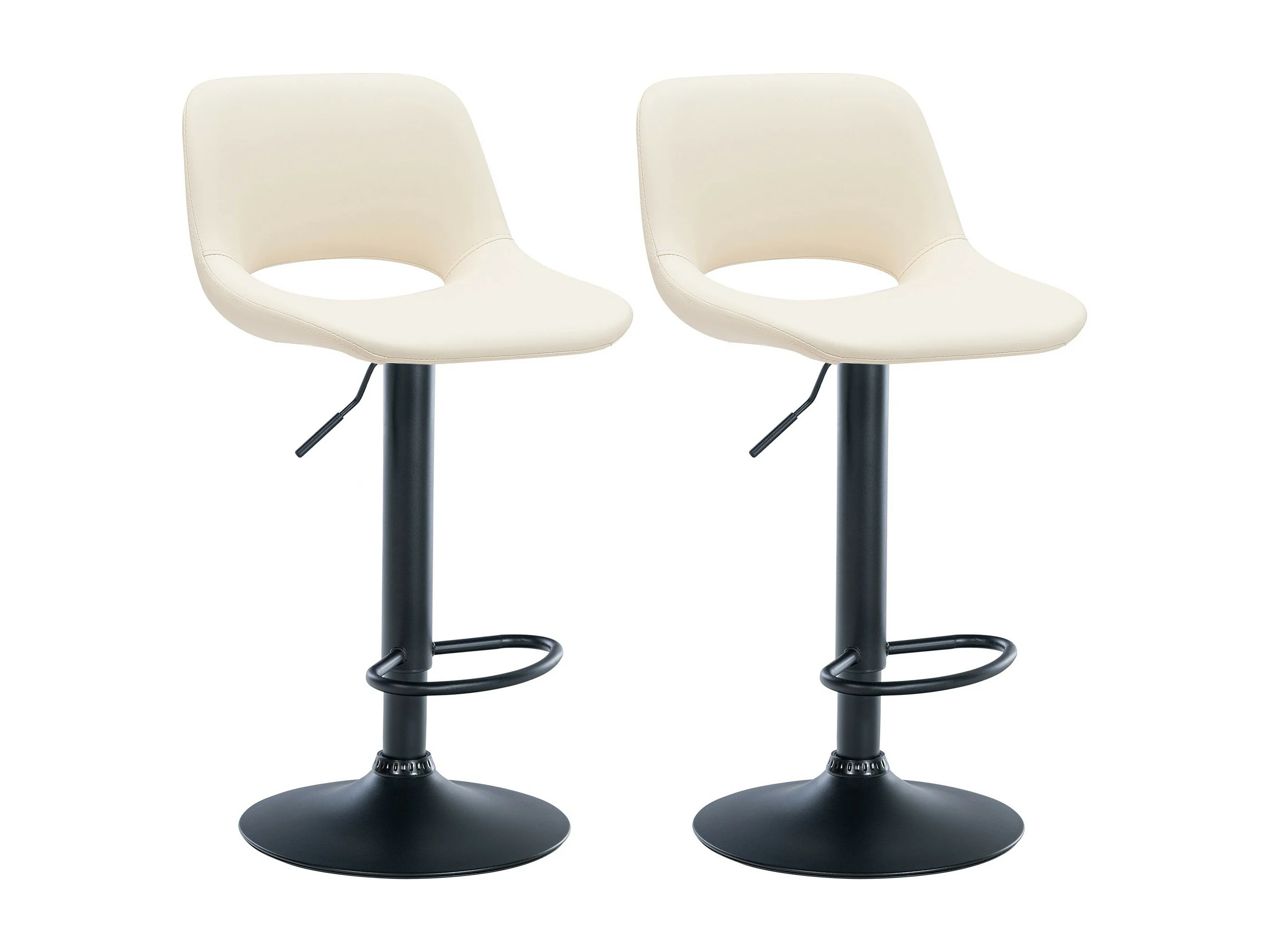 Lot de 2 Tabouret de bar - Similicuir & Noir - Crème - Vonore