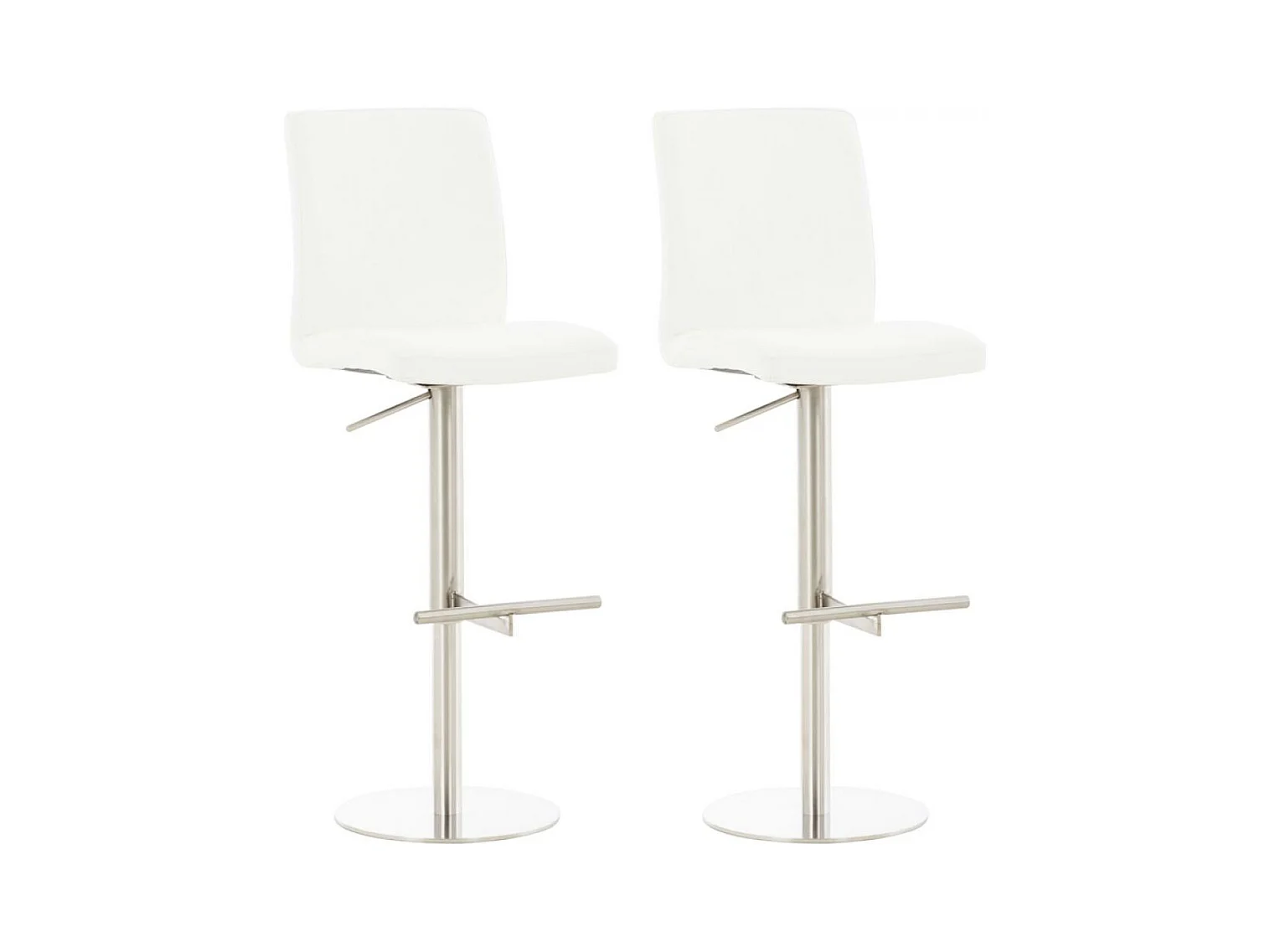 Lot de 2 Tabouret de bar - Similicuir & Acier inoxydable - Blanc - Cadiz