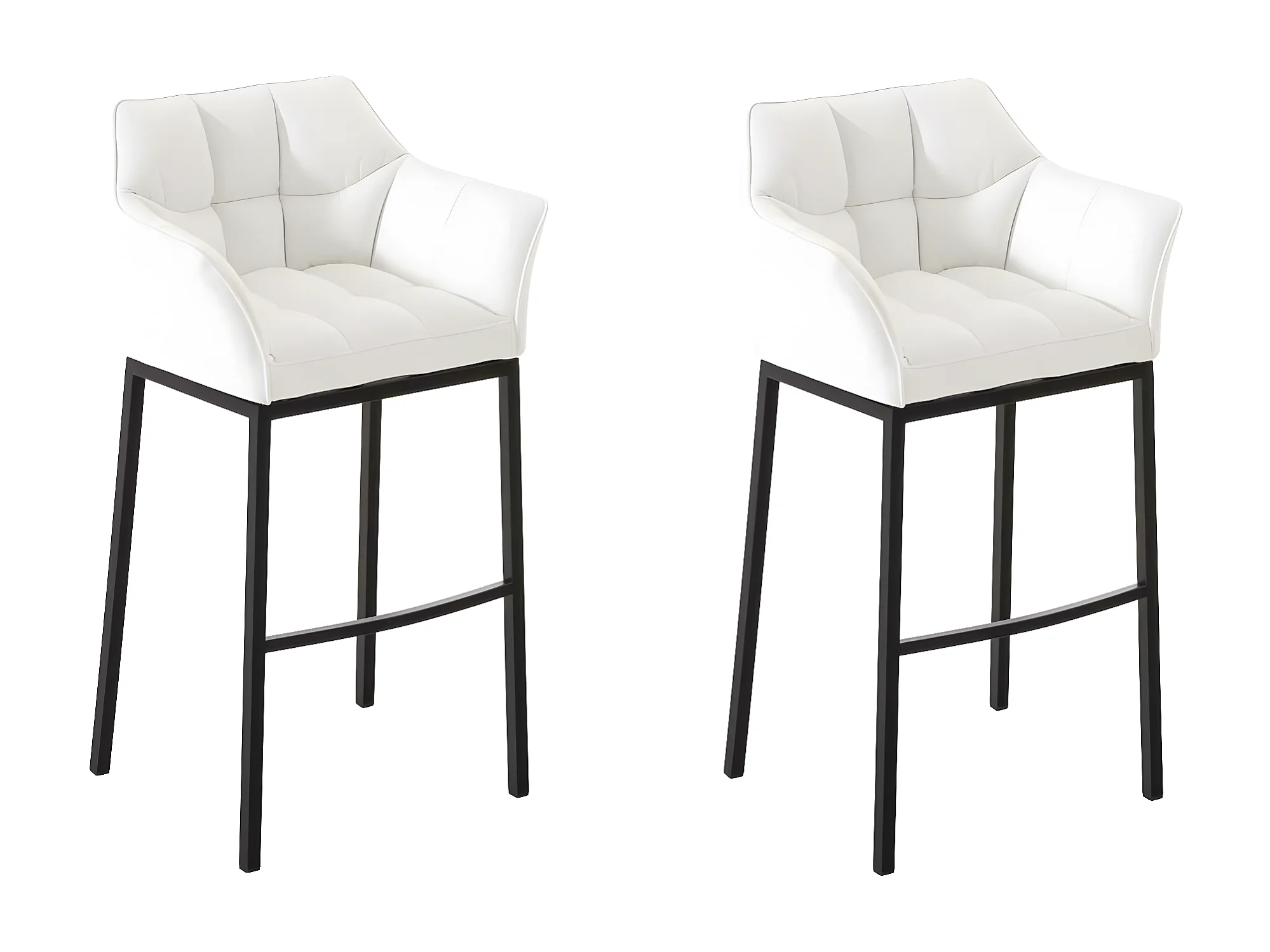 Lot de 2 Tabouret de bar - Similicuir & Noir - Blanc - DAMASO